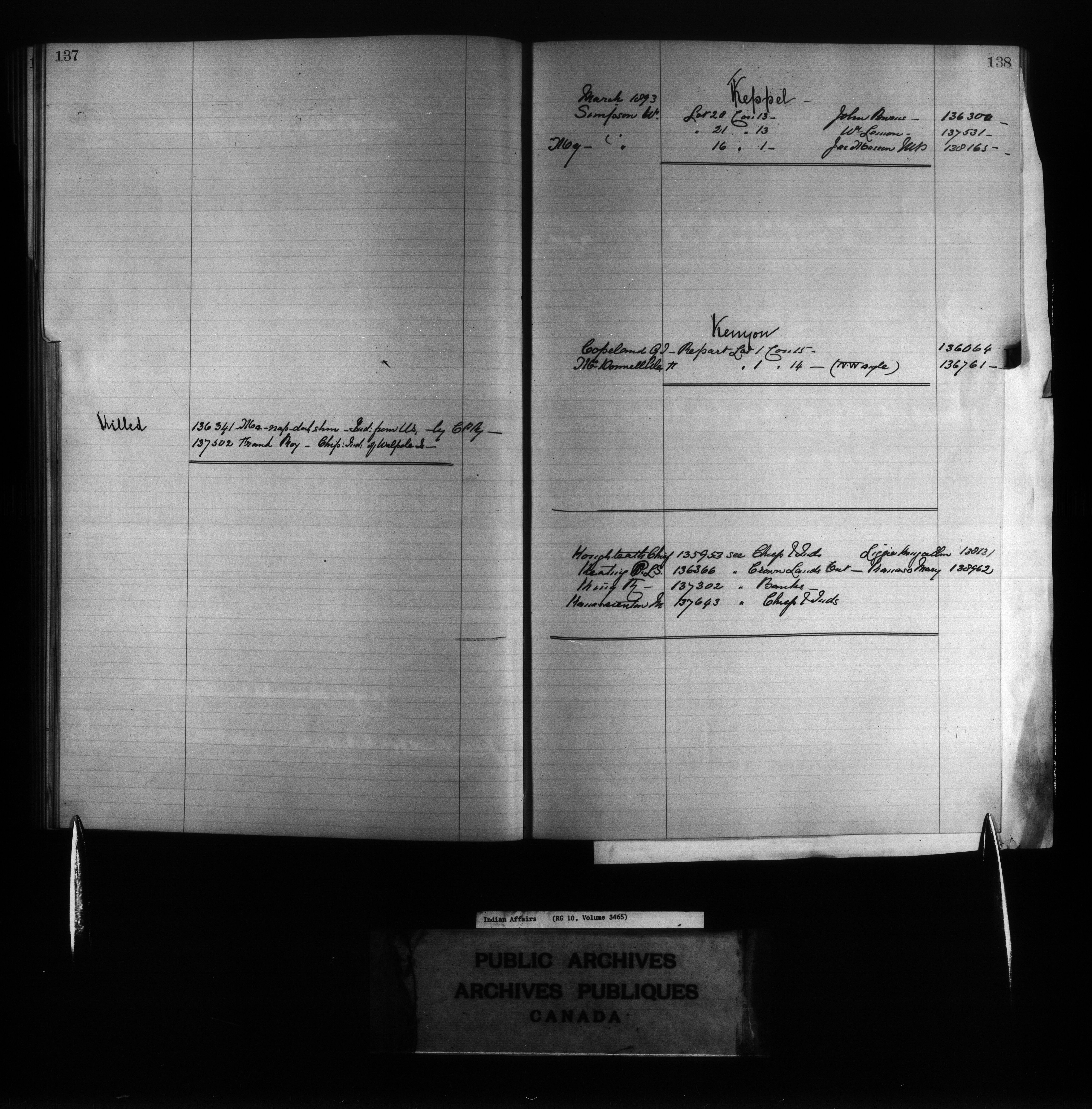 Department of Indian Affairs : Index to Red Series Registers - 11073