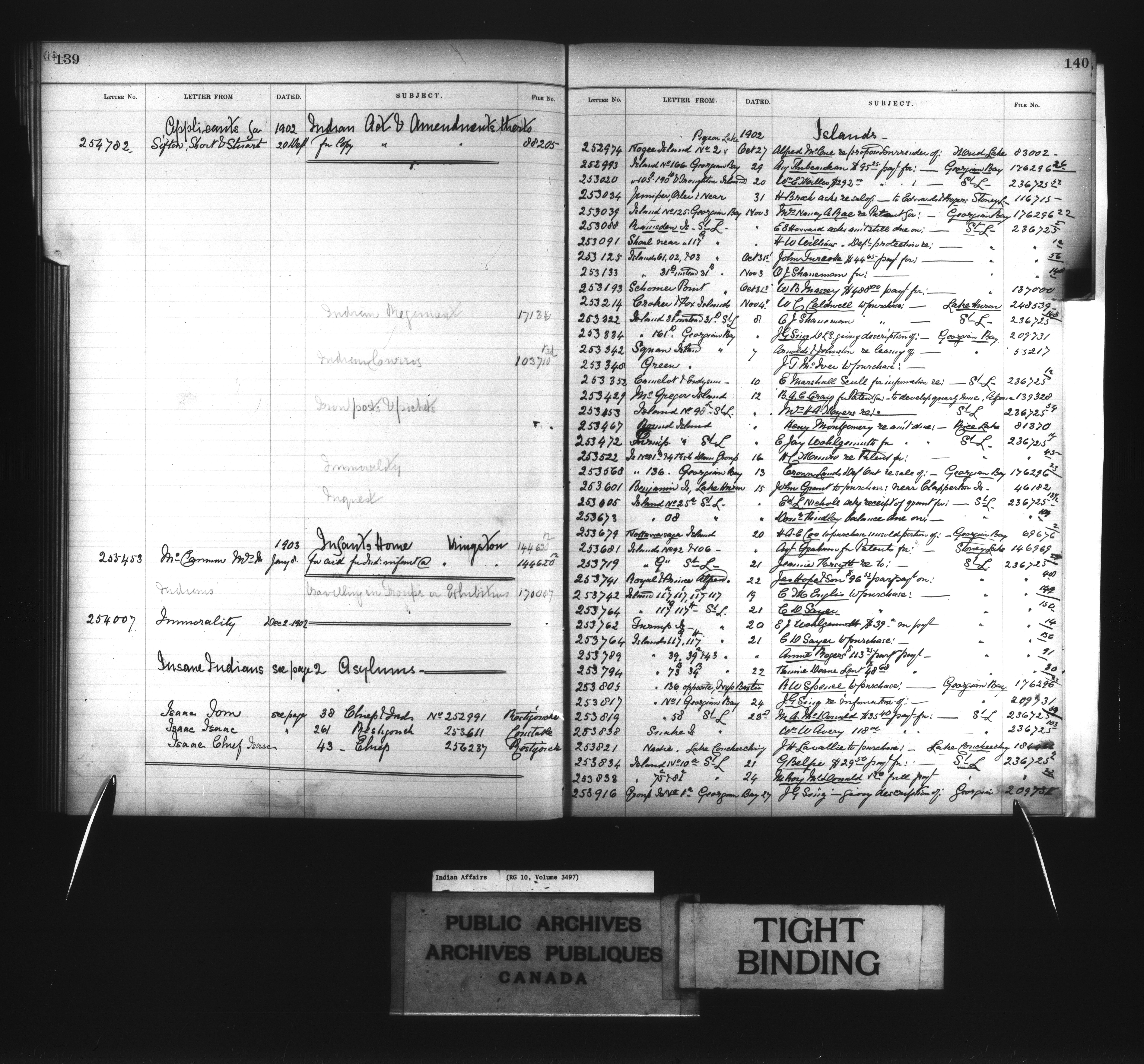 Department of Indian Affairs, Headquarters central registry system :registers, indices and indexed registers : C-11080