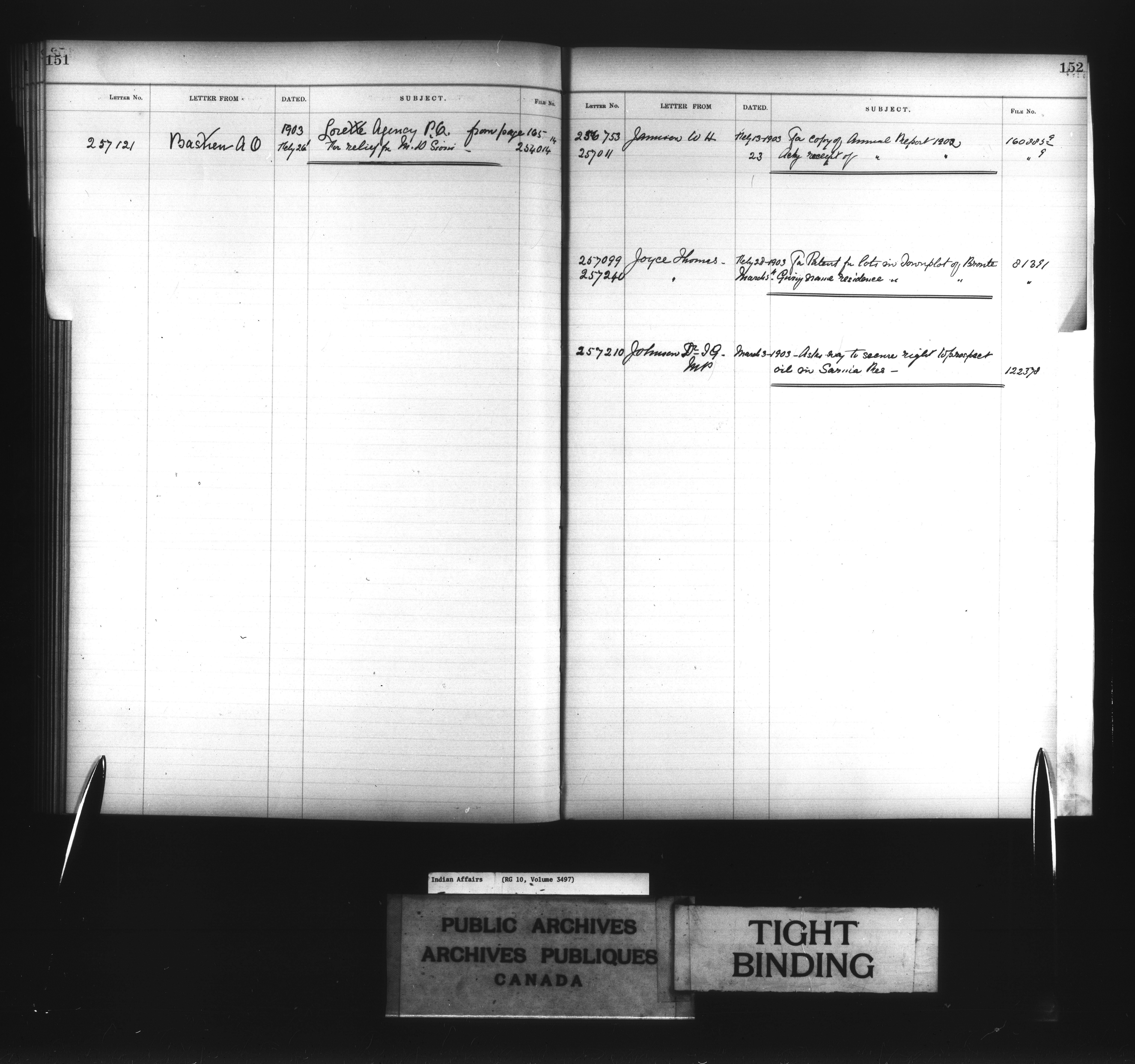 Department of Indian Affairs, Headquarters central registry system :registers, indices and indexed registers : C-11080