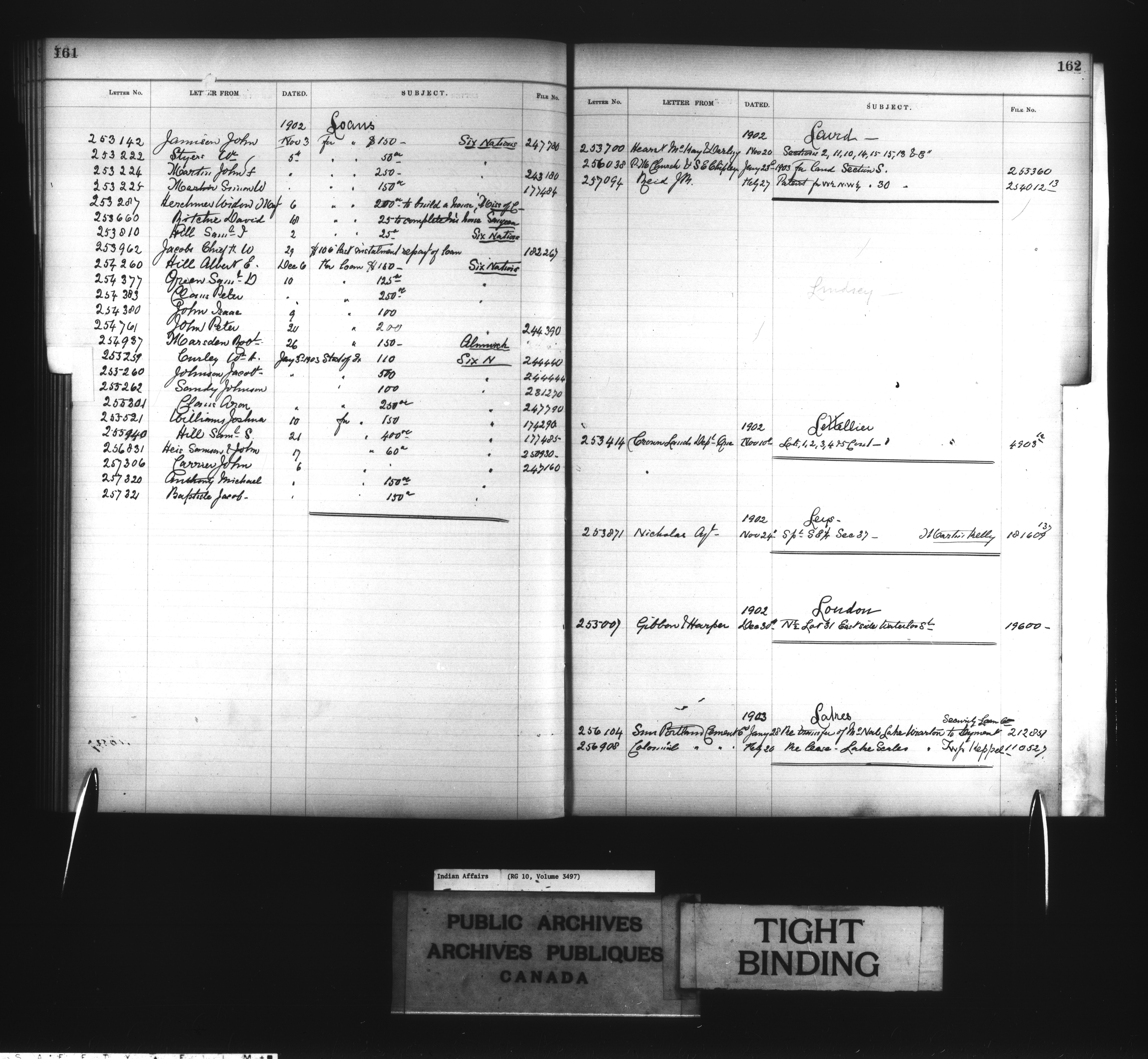 Department of Indian Affairs : Index to Red Series Registers - 11080