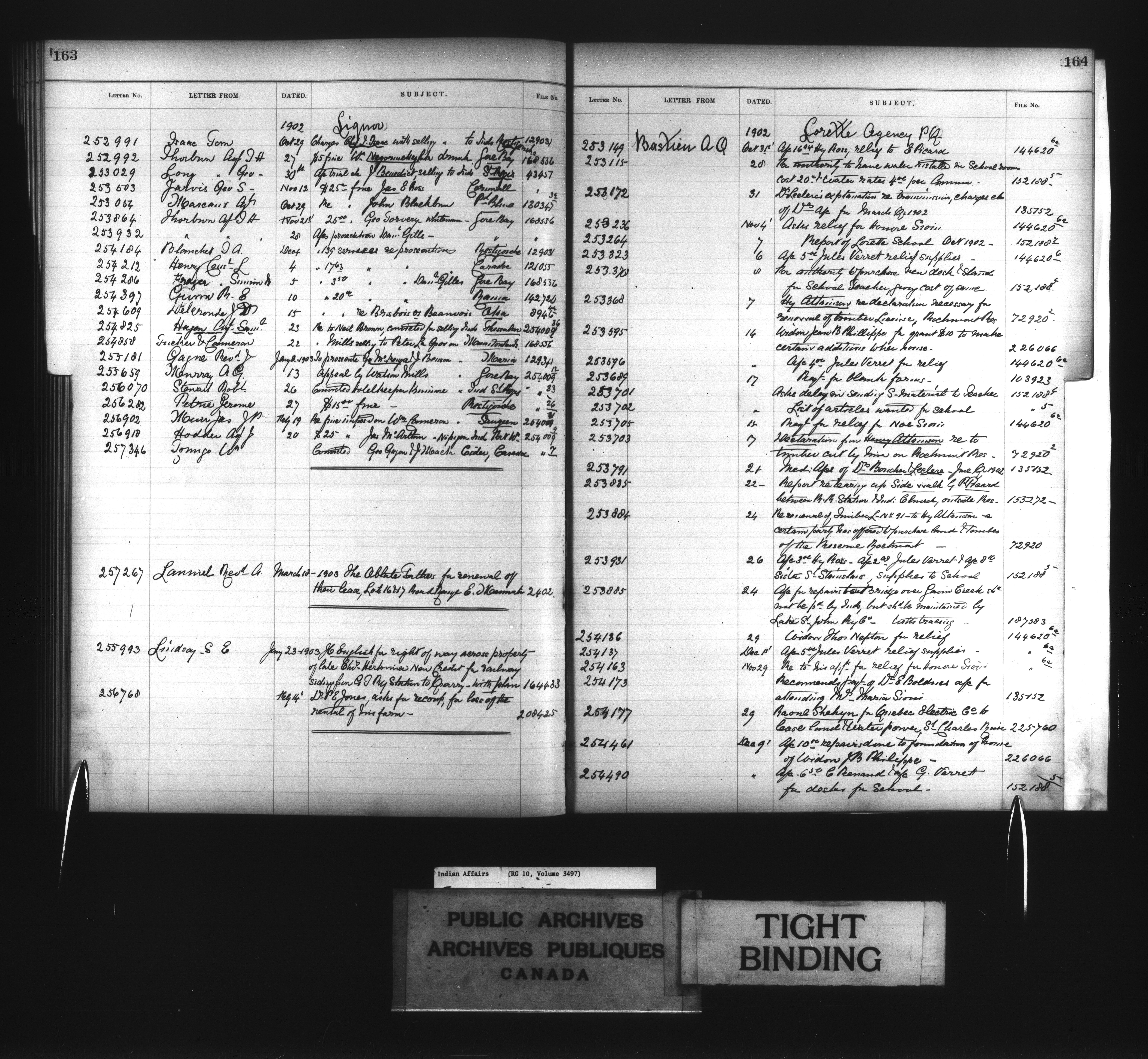 Department of Indian Affairs, Headquarters central registry system :registers, indices and indexed registers : C-11080
