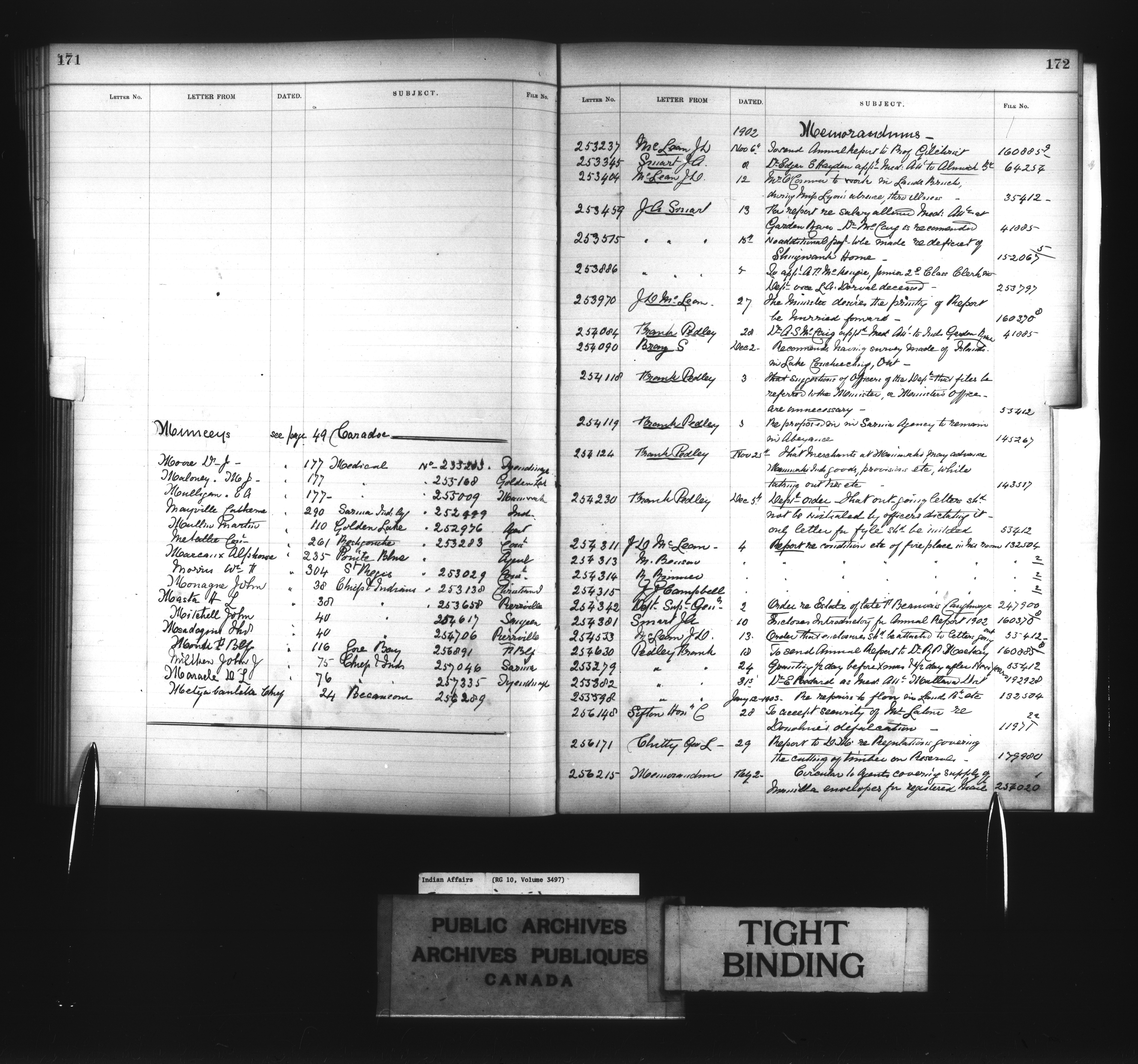 Department of Indian Affairs, Headquarters central registry system :registers, indices and indexed registers : C-11080