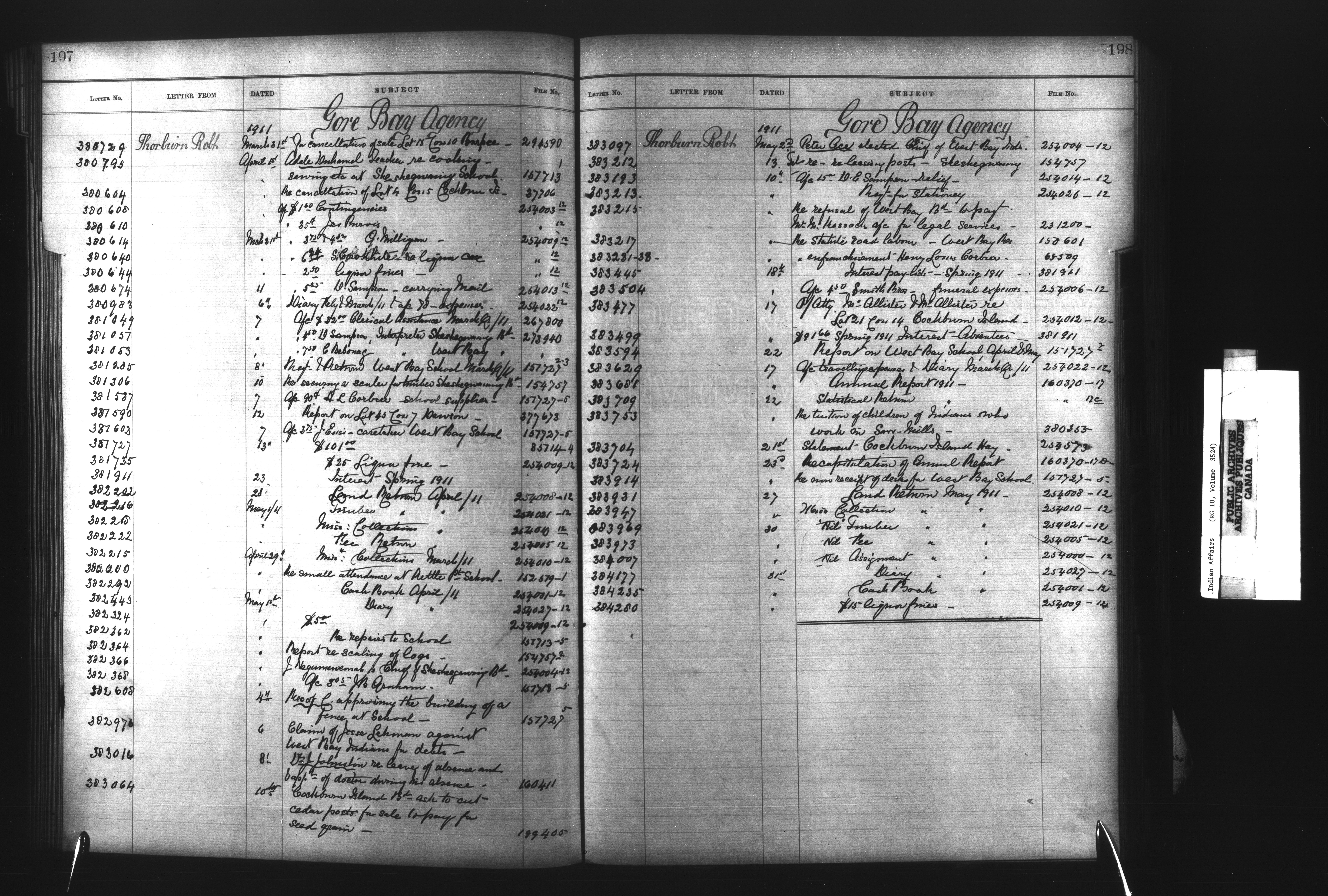Department of Indian Affairs, Headquarters central registry system :registers, indices and indexed registers : C-11090