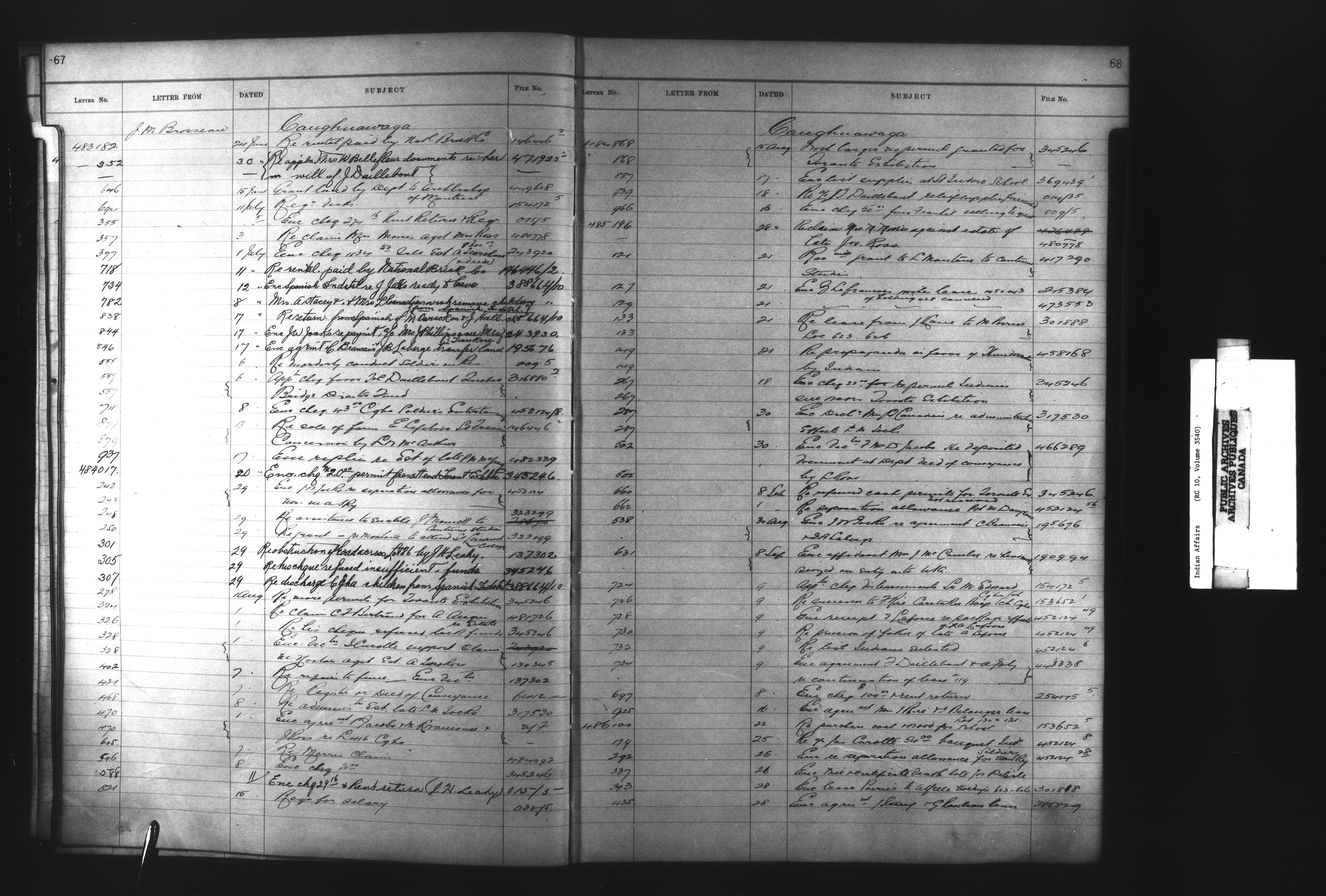 Department of Indian Affairs, Headquarters central registry system :registers, indices and indexed registers : C-11096
