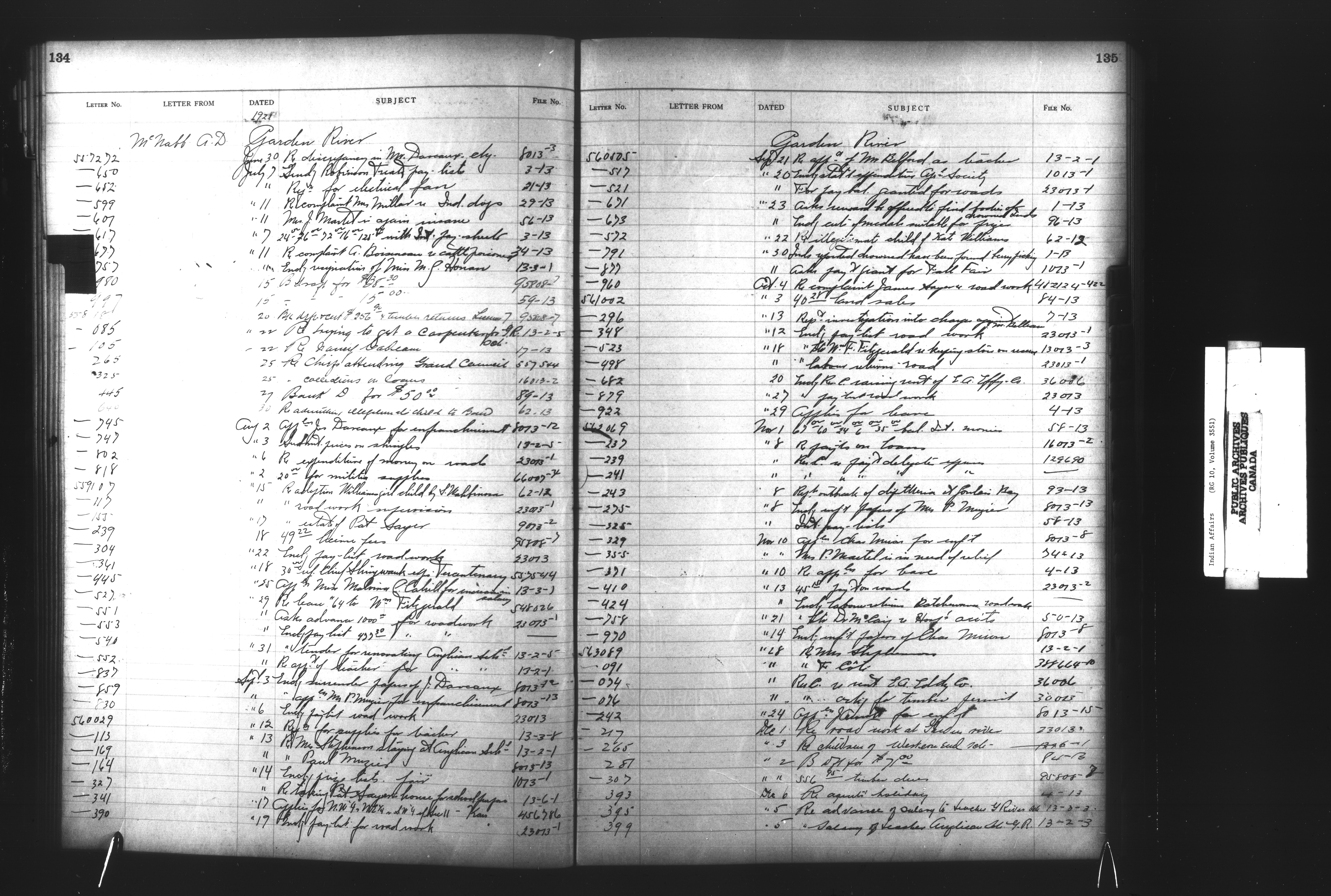 Department of Indian Affairs, Headquarters central registry system :registers, indices and indexed registers : C-11099