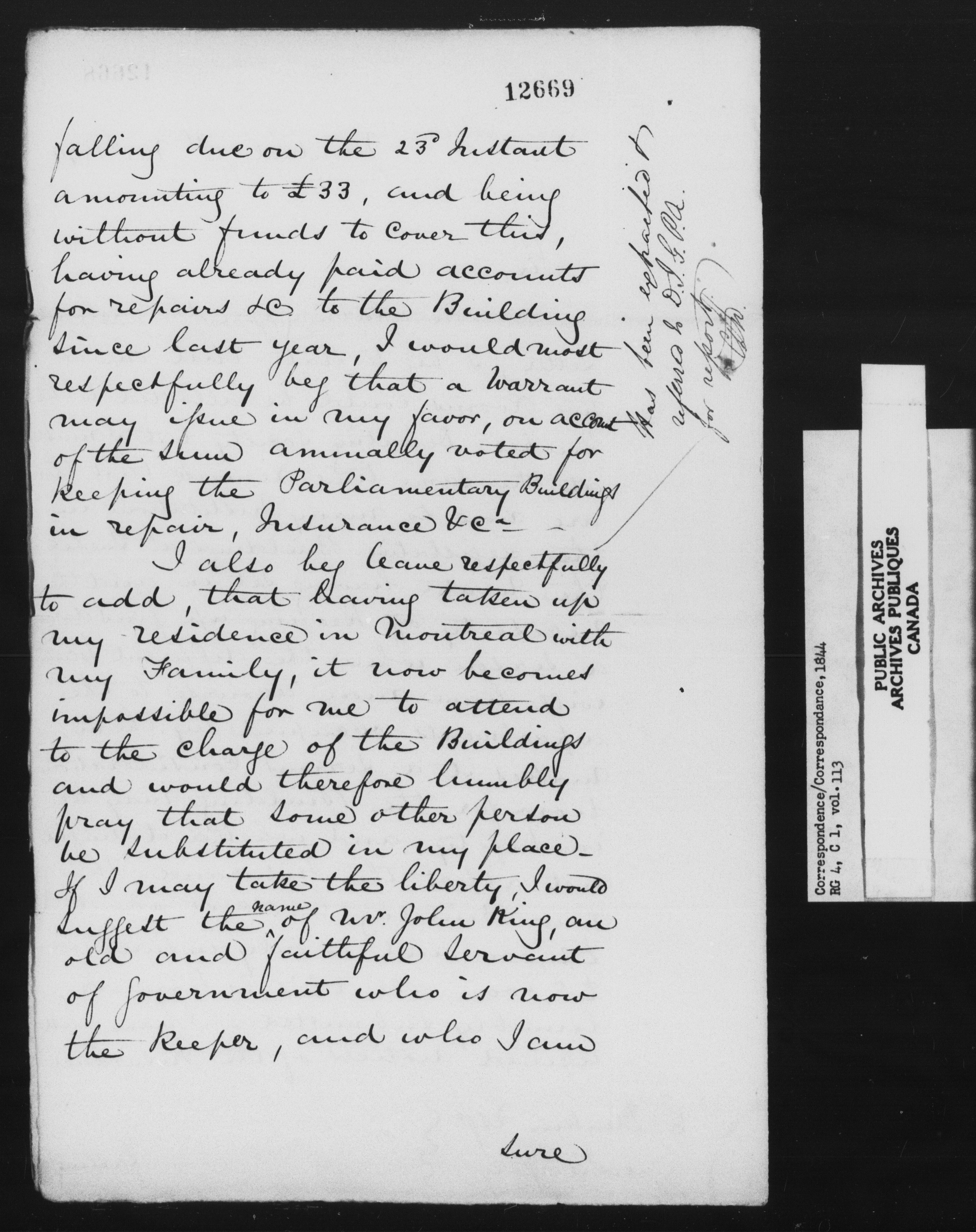 Provincial Secretary, Canada East : Numbered Correspondence Files, 1839-1867 - 11101