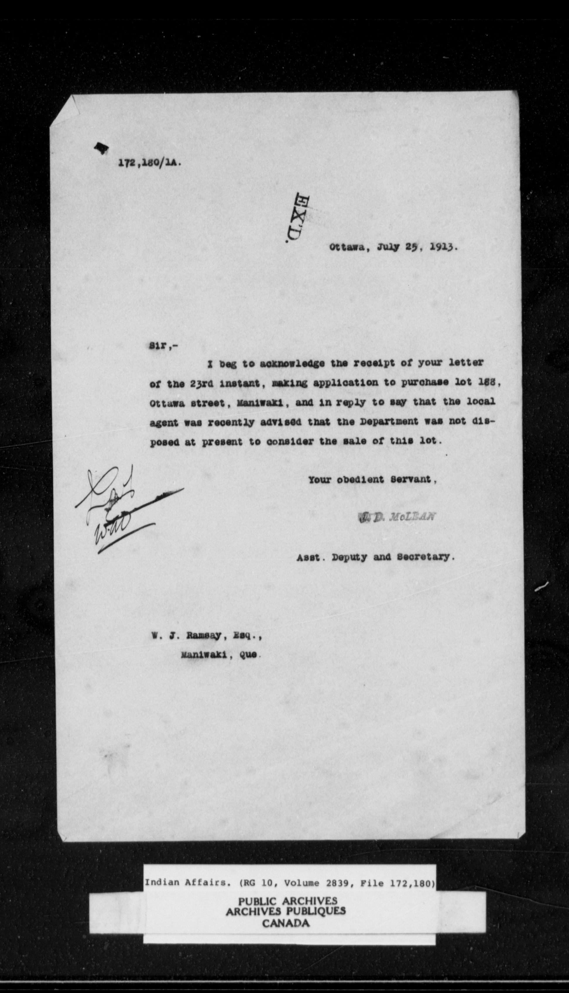 Department of Indian Affairs, Headquarters central registry system : red series - 11285