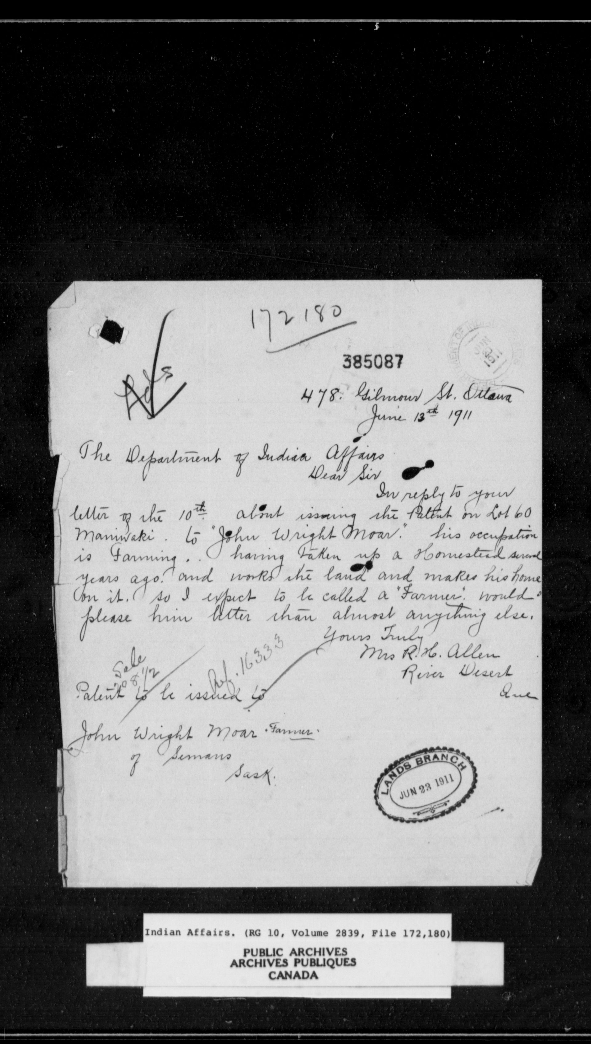 Department of Indian Affairs, Headquarters central registry system : red series - 11285