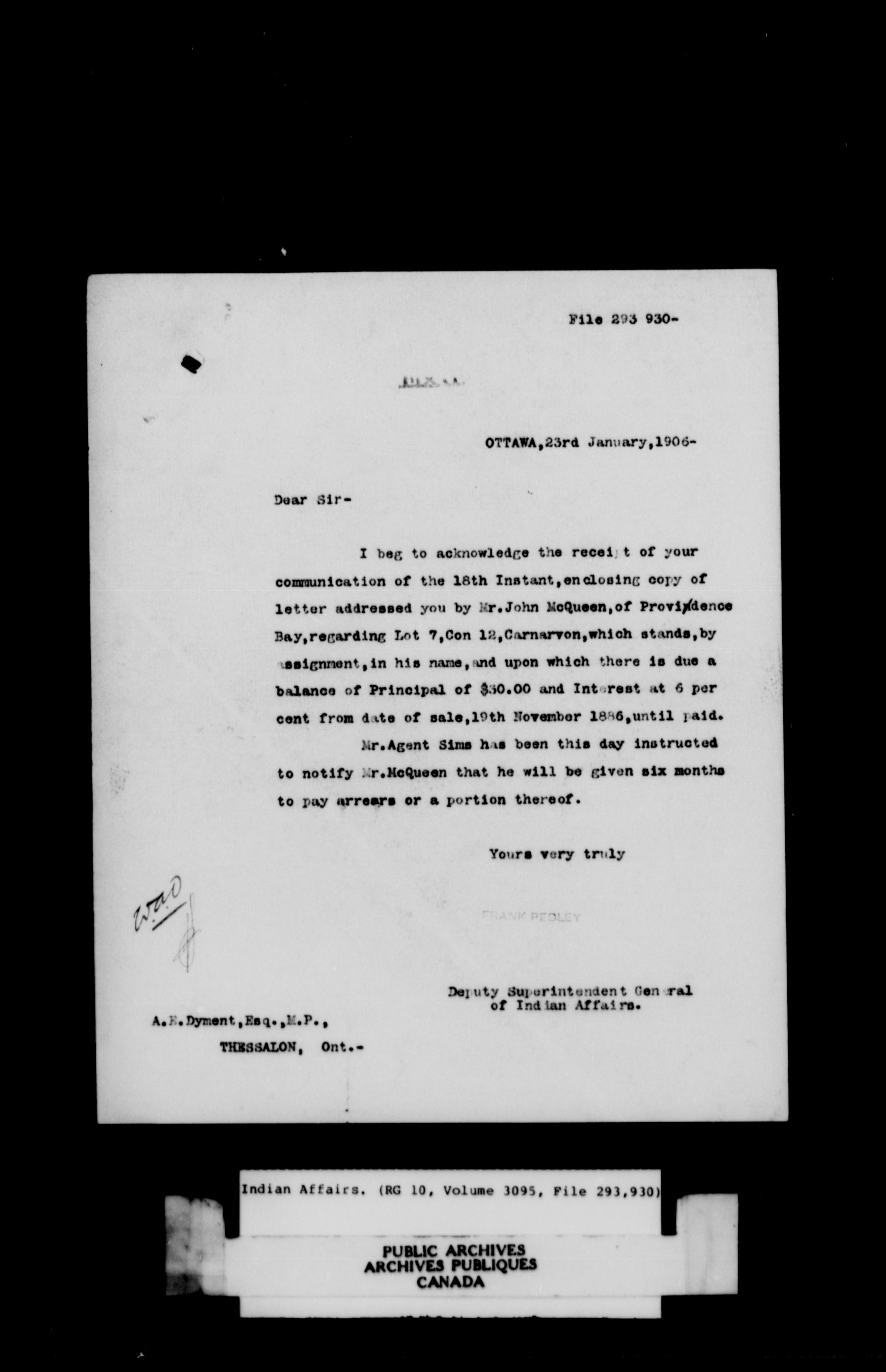 Department of Indian Affairs, Headquarters central registry system : red series (3089, file 281,710 to vol. 3095, file 294,660) - 11323