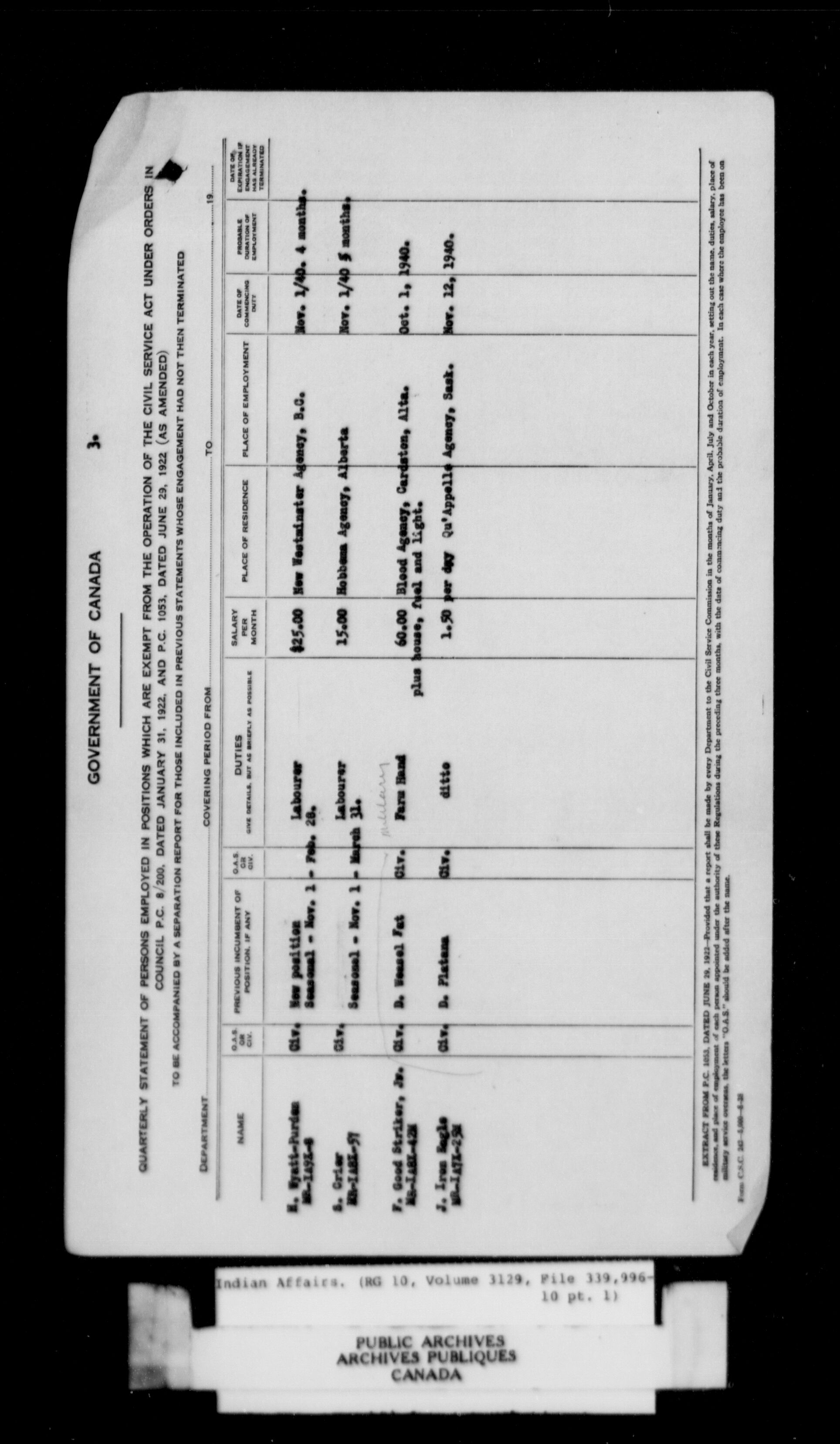 Department of Indian Affairs, Black Series : C-11328