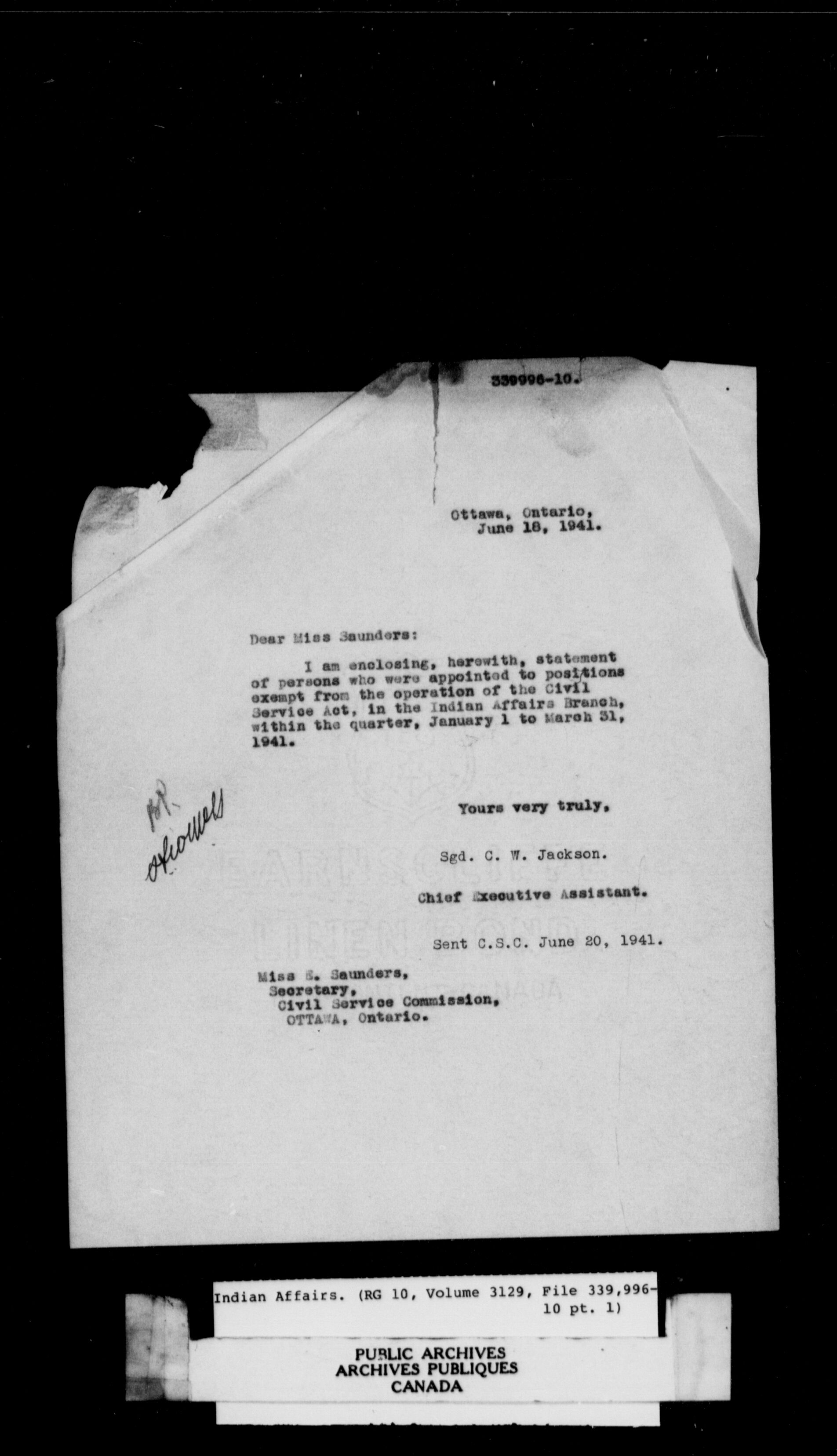 Department of Indian Affairs, Black Series : C-11328