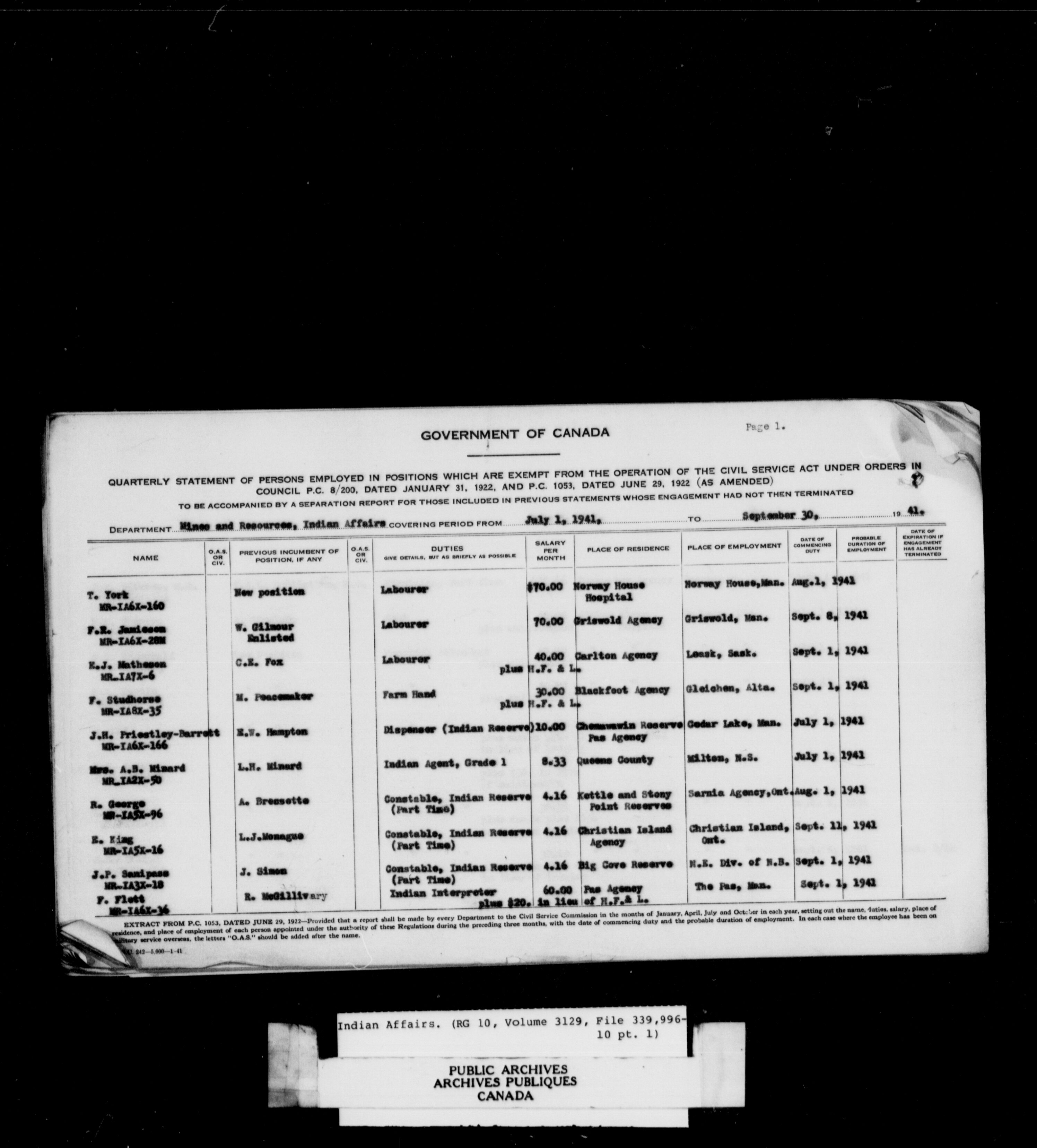 Department of Indian Affairs, Black Series : C-11328