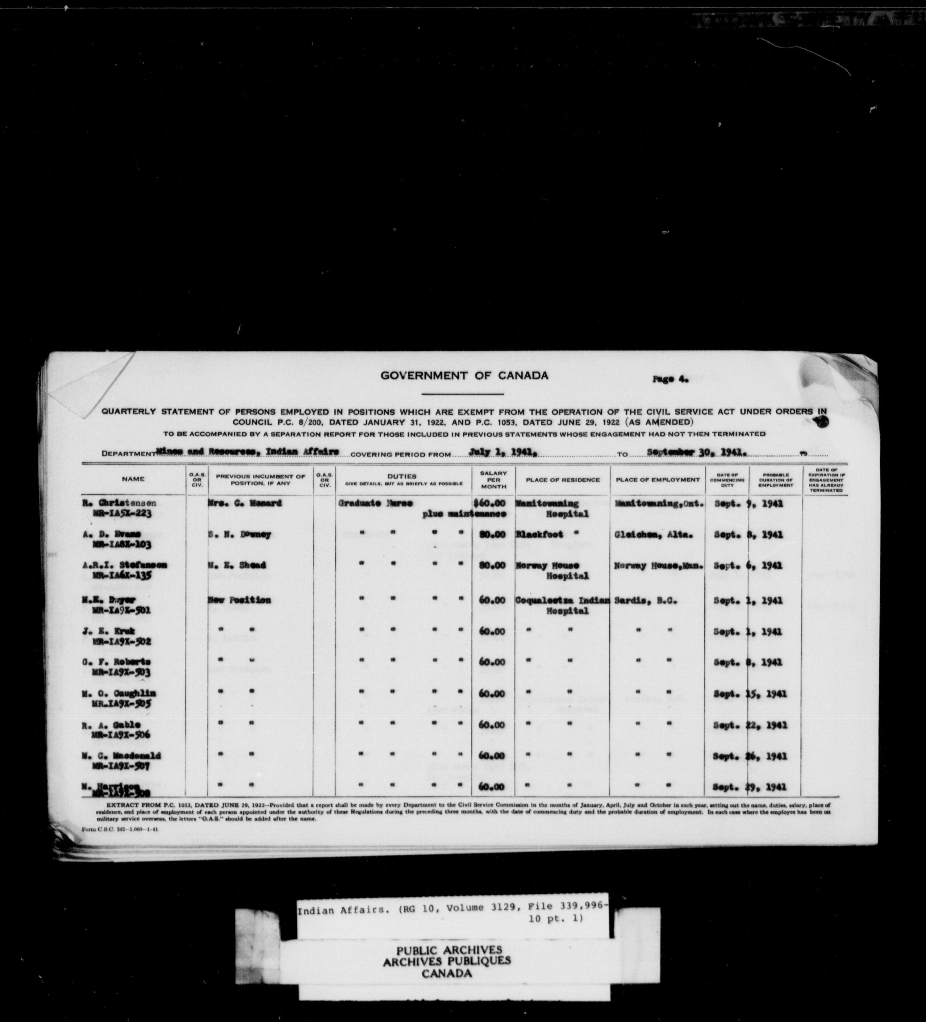 Department of Indian Affairs, Black Series : C-11328