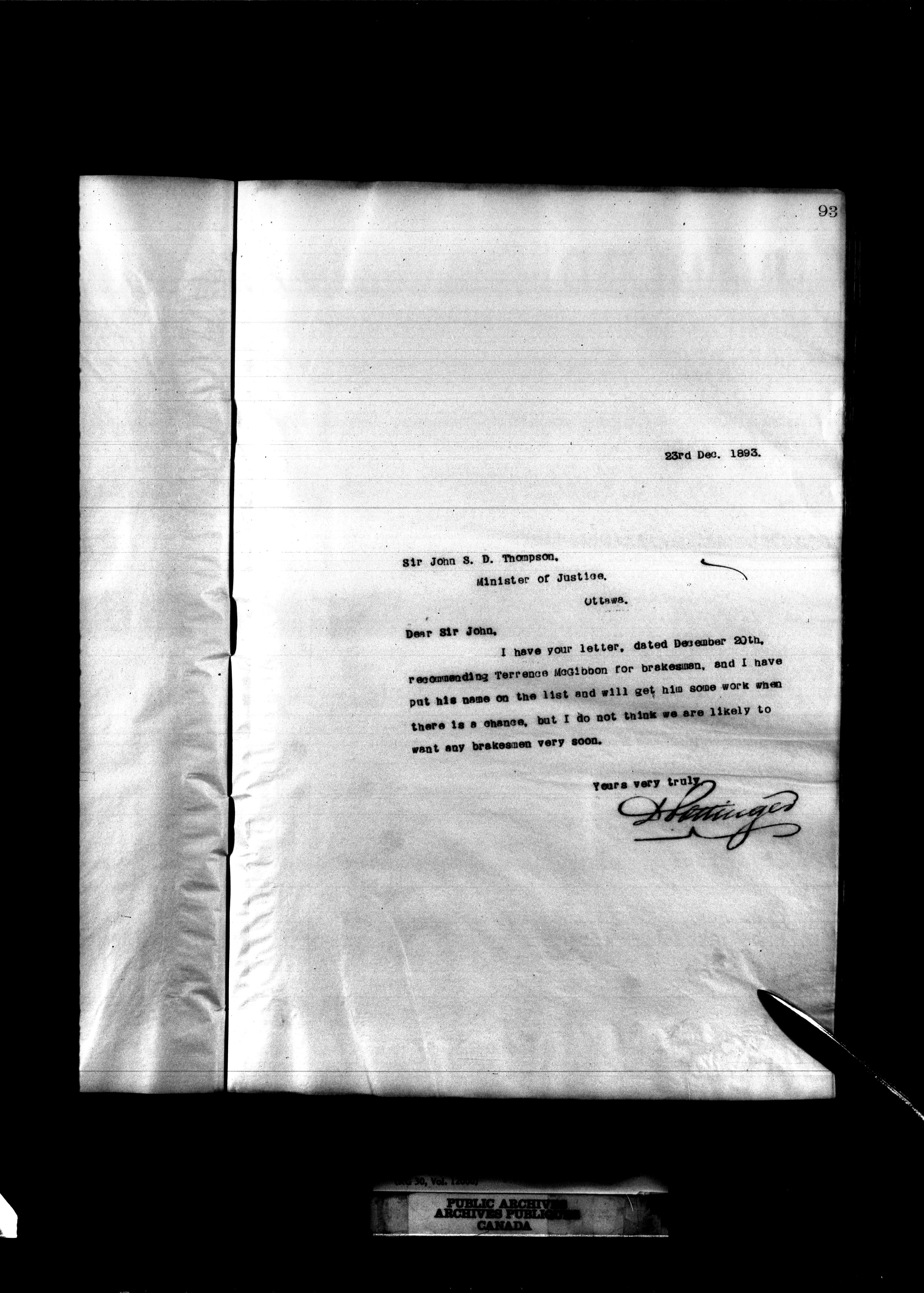 Canadian Government Railways : Office of the General Manager, Outward correspondence - 11365