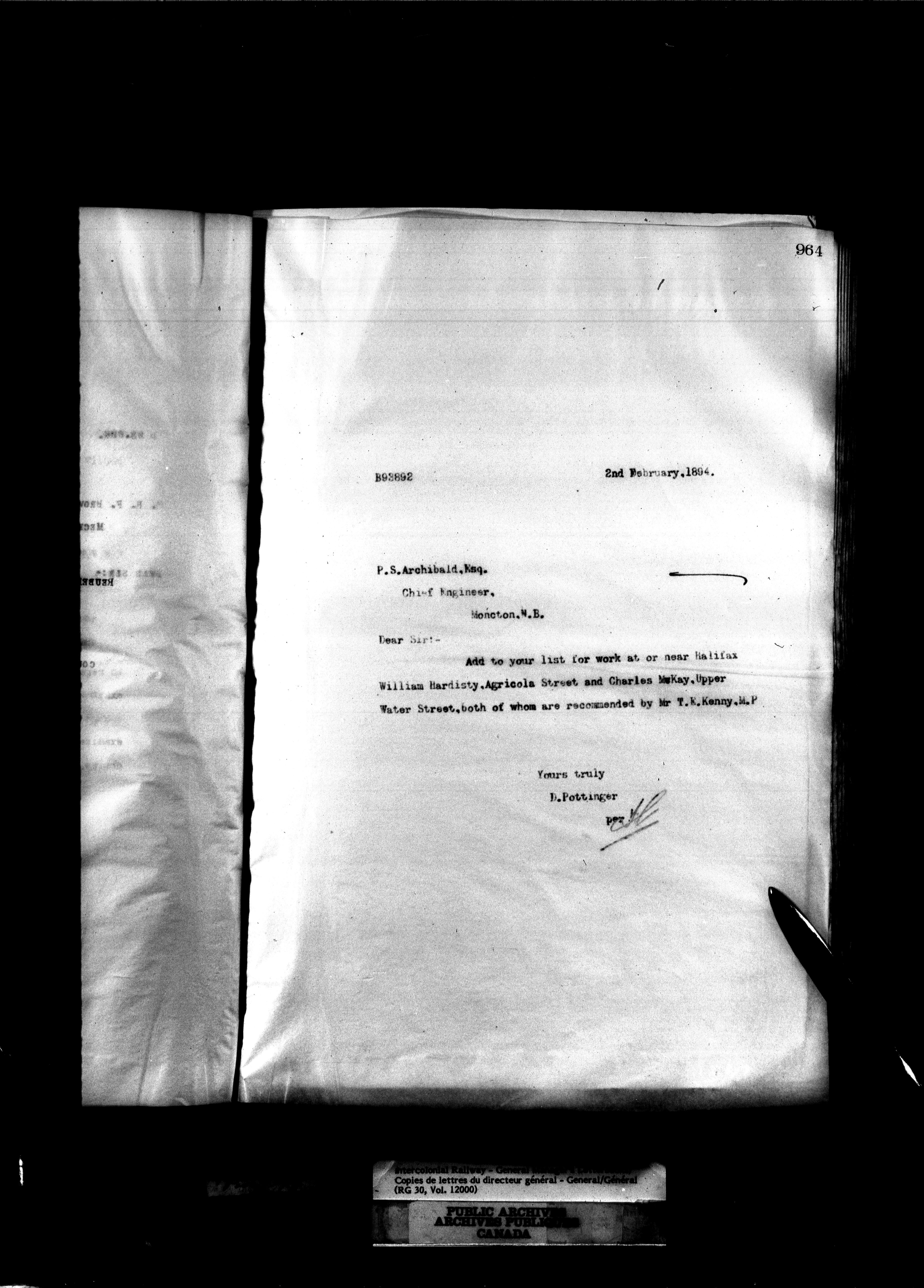 Canadian Government Railways : Office of the General Manager, Outward correspondence - 11365