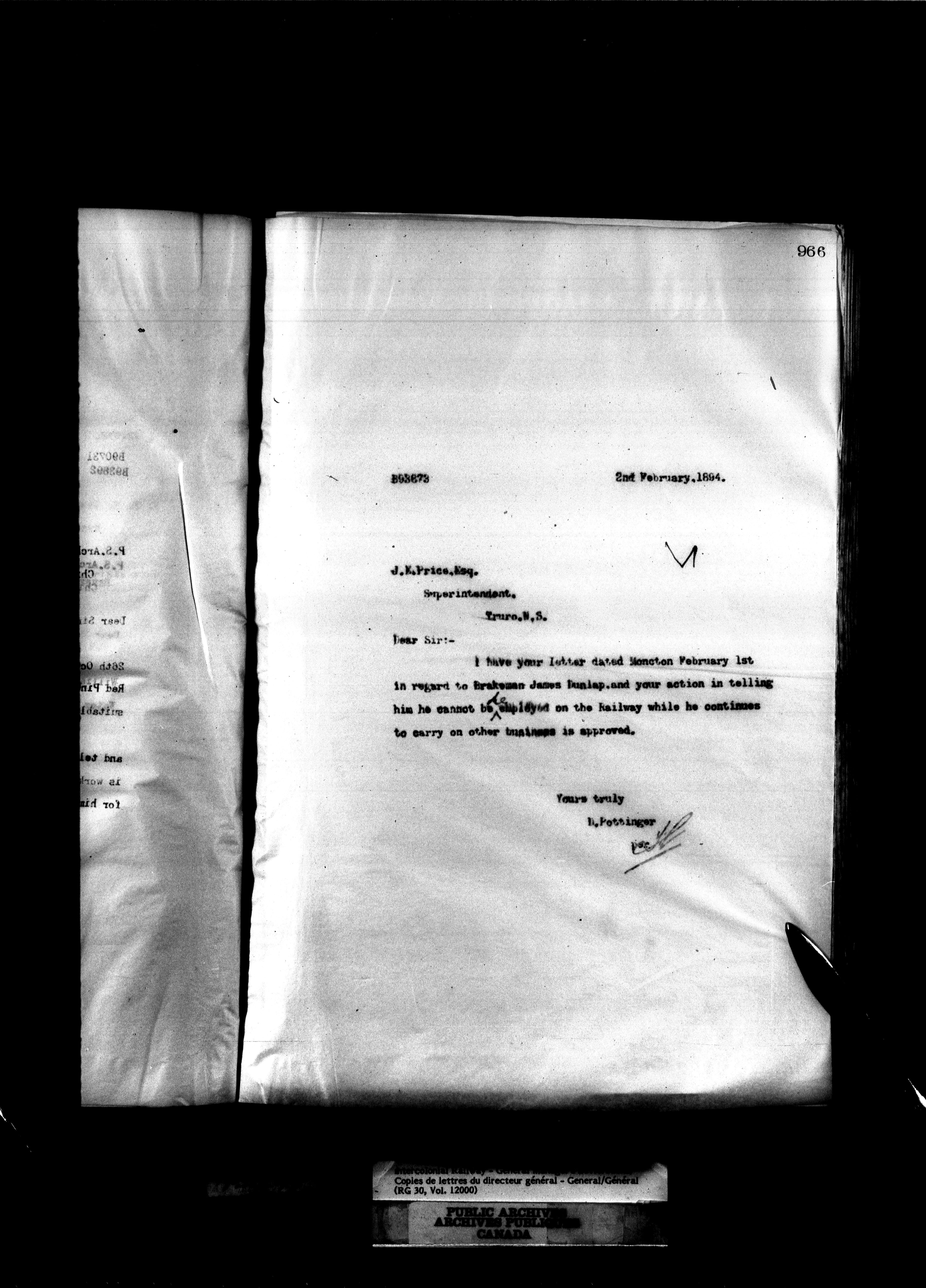 Canadian Government Railways : Office of the General Manager, Outward correspondence - 11365