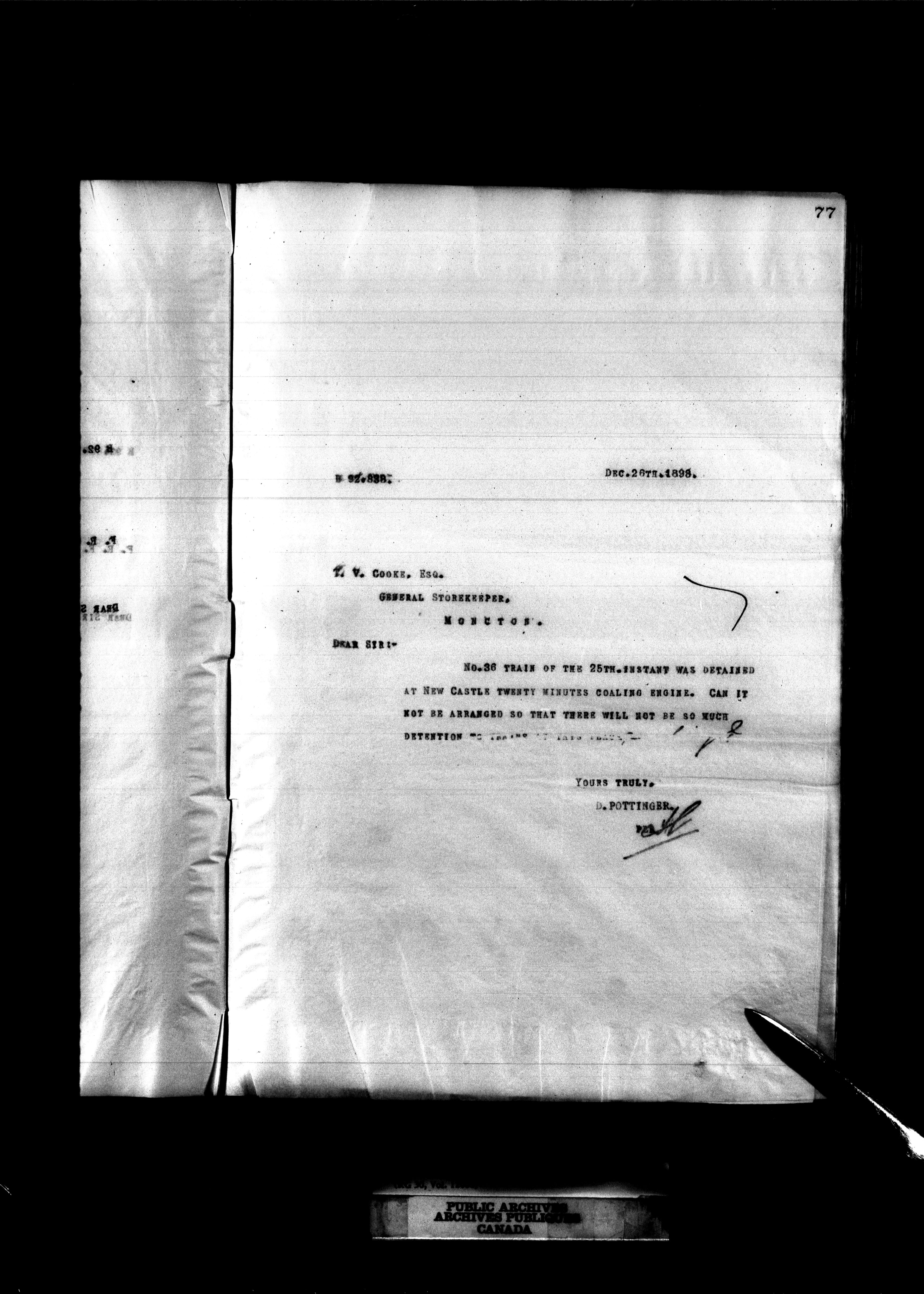 Canadian Government Railways : Office of the General Manager, Outward correspondence - 11365
