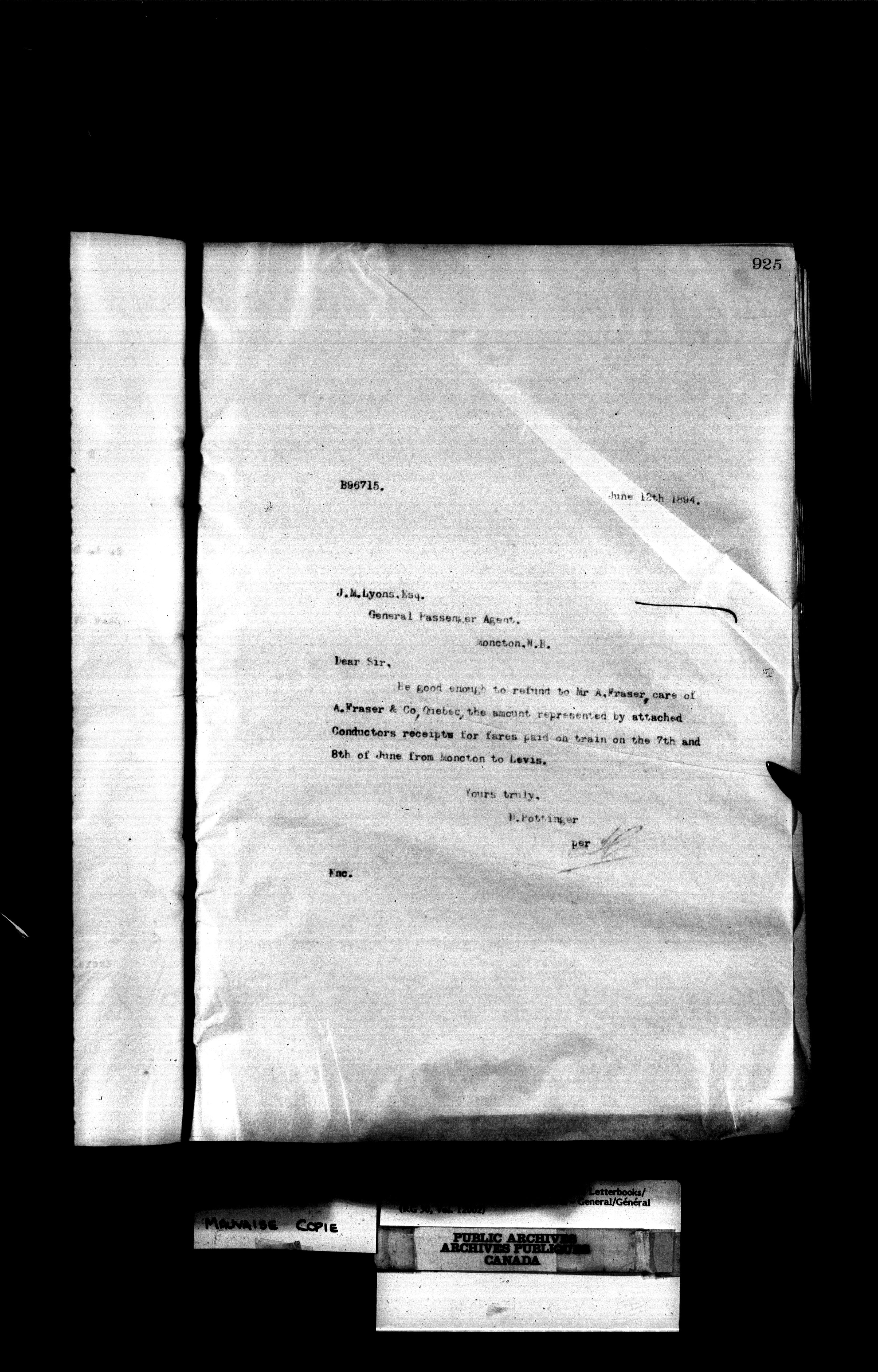 Canadian Government Railways : Office of the General Manager, Outward correspondence - 11368