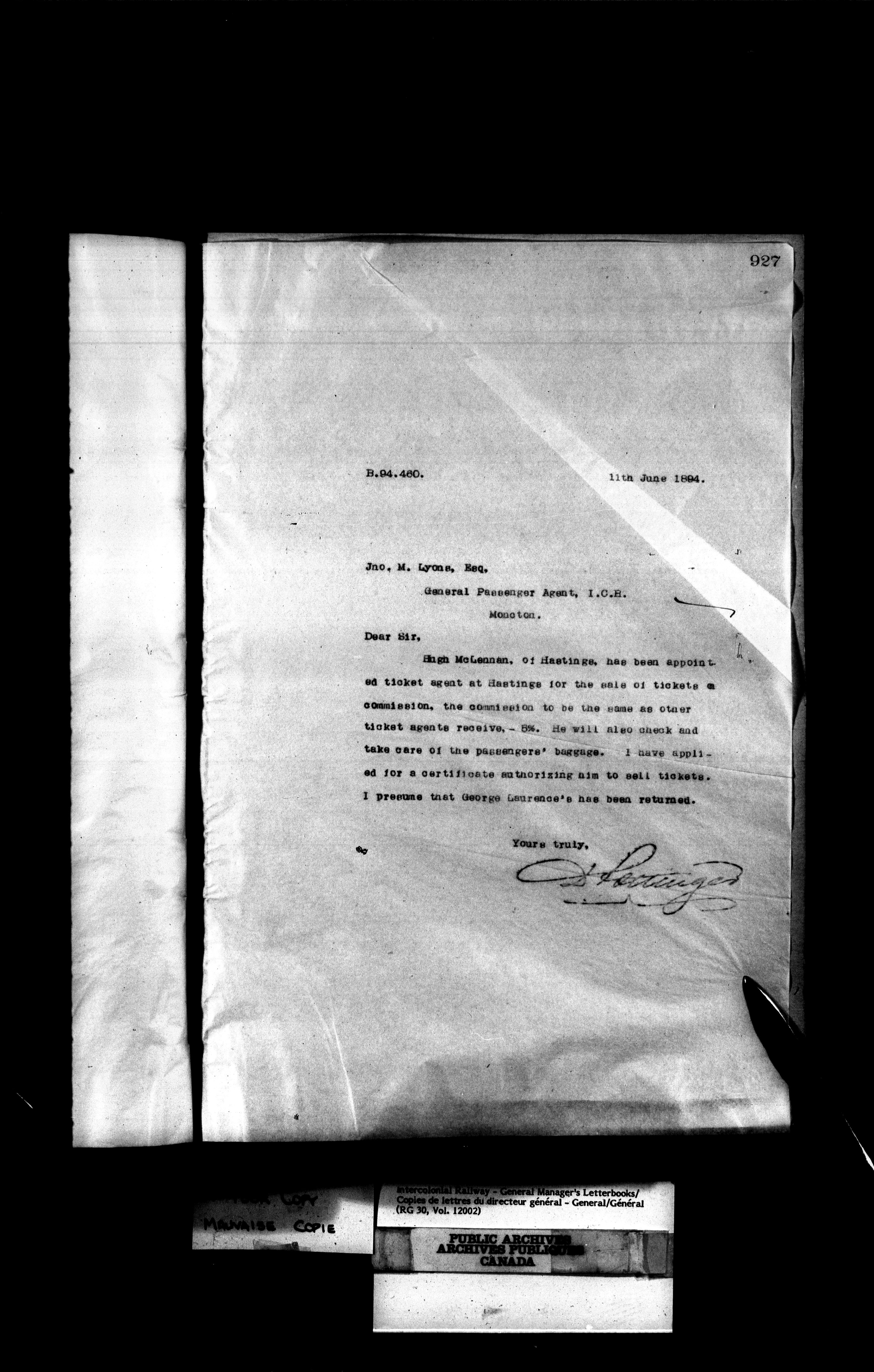 Canadian Government Railways : Office of the General Manager, Outward correspondence - 11368