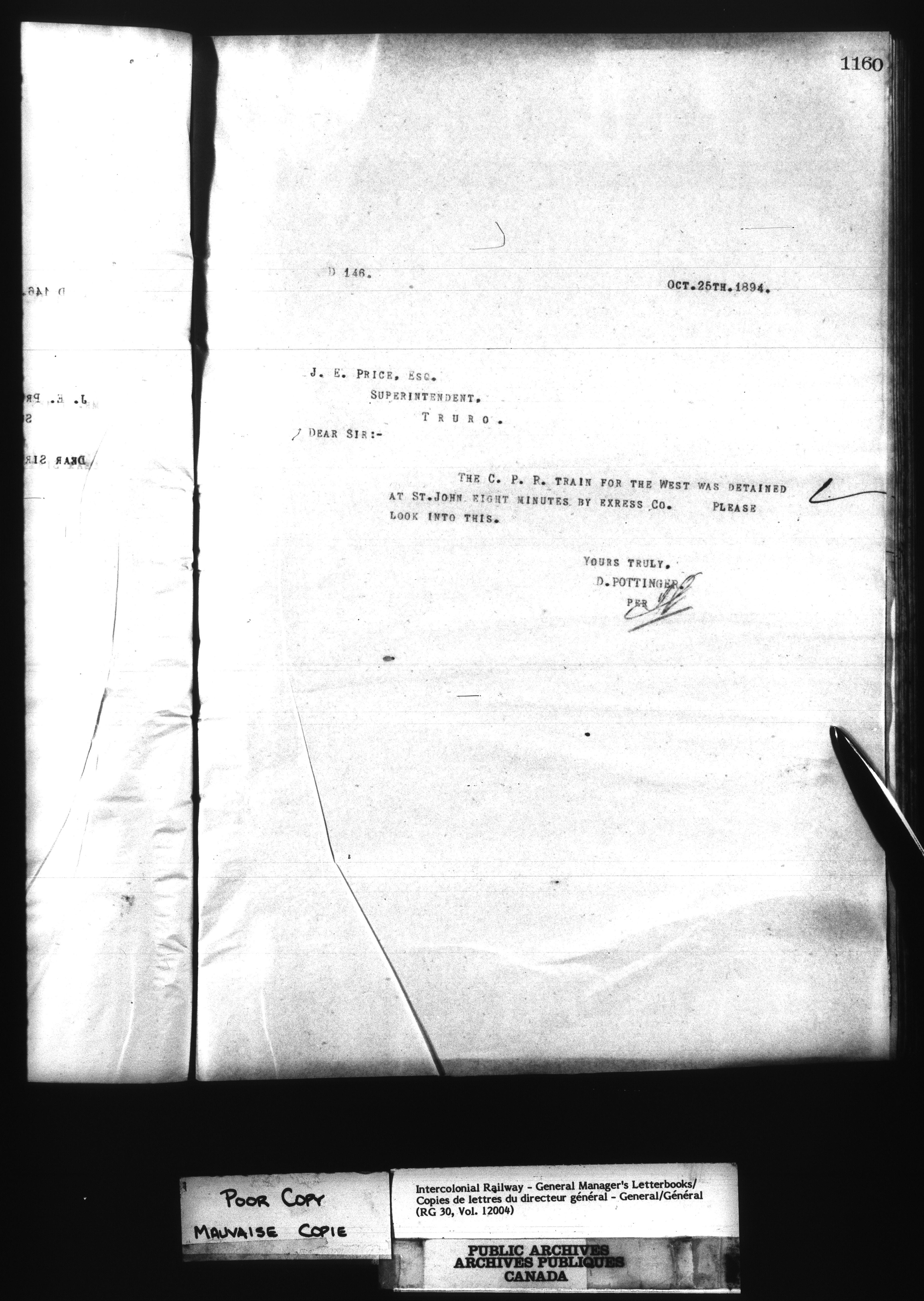 Canadian Government Railways : Office of the General Manager, Outward correspondence - 11372