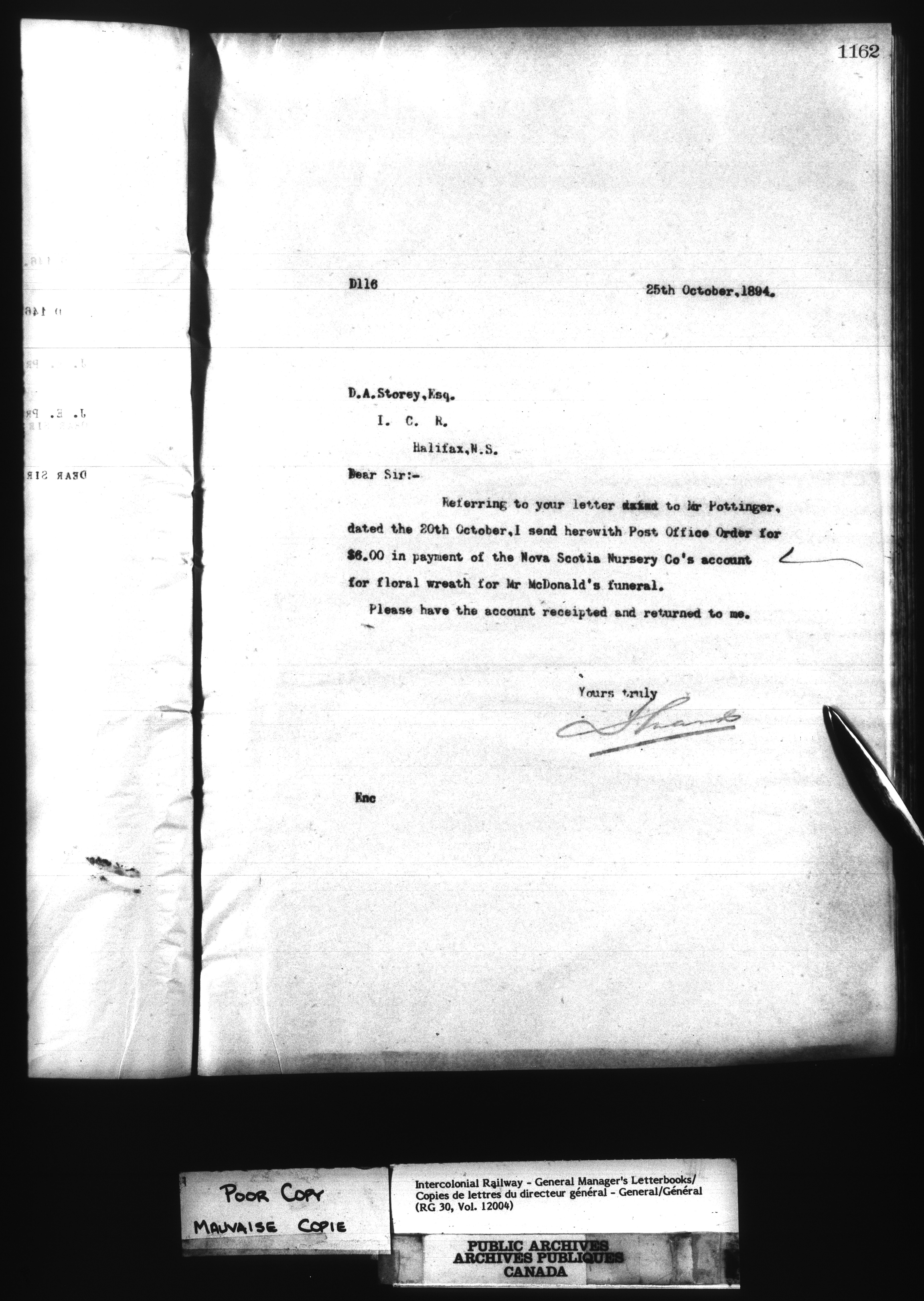 Canadian Government Railways : Office of the General Manager, Outward correspondence - 11372
