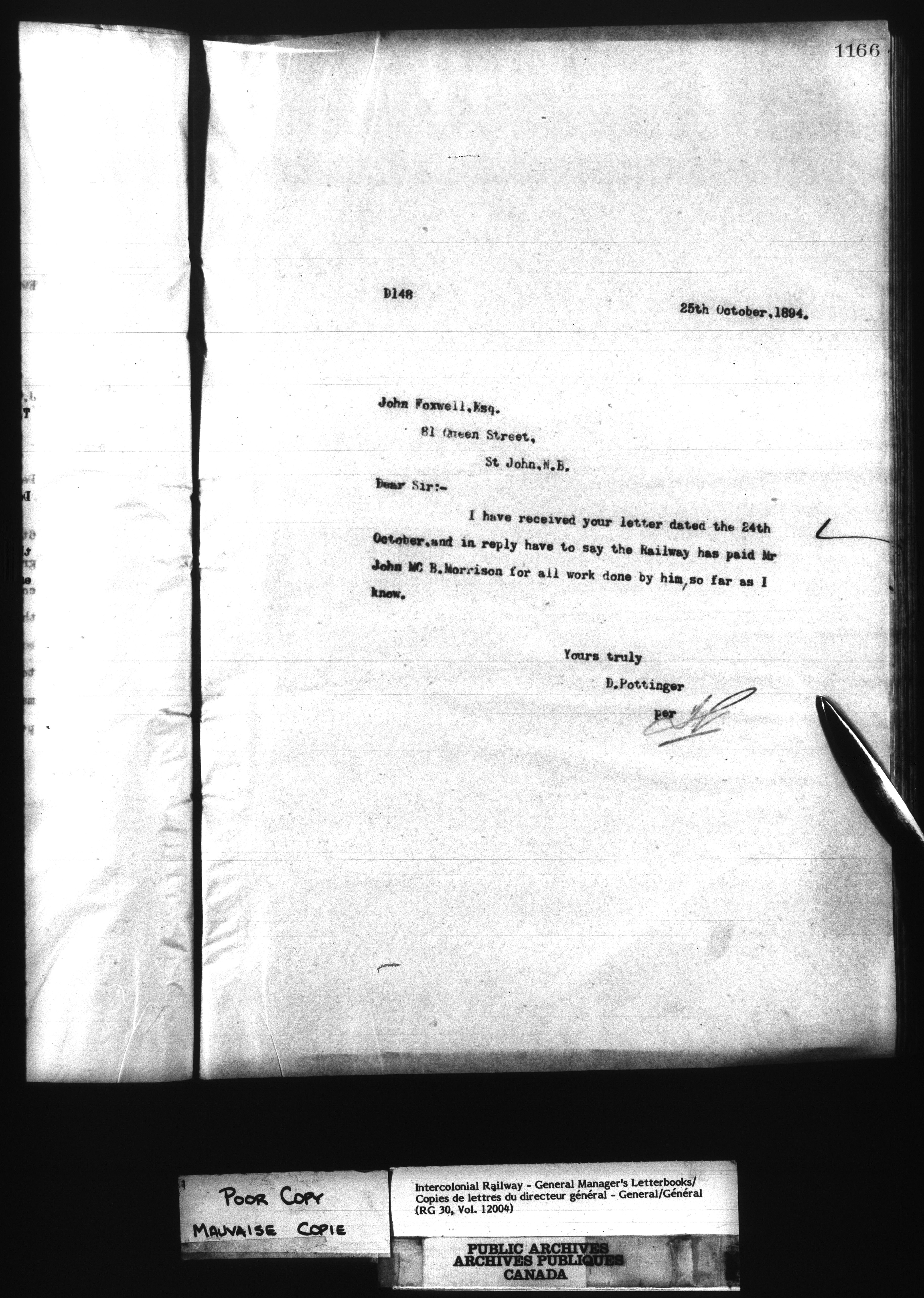 Canadian Government Railways : Office of the General Manager, Outward correspondence - 11372