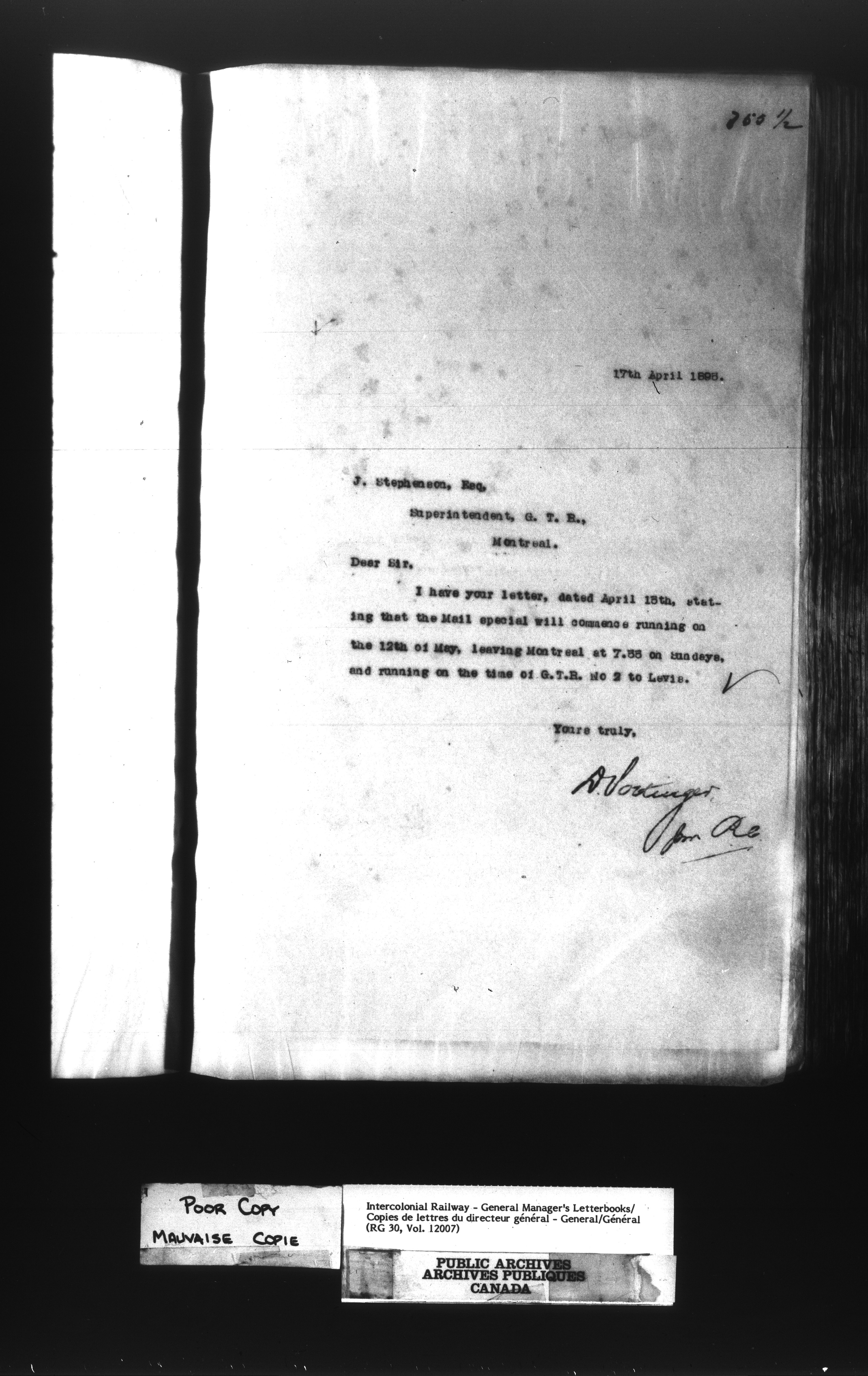 Canadian Government Railways : Office of the General Manager, Outward correspondence - 11376