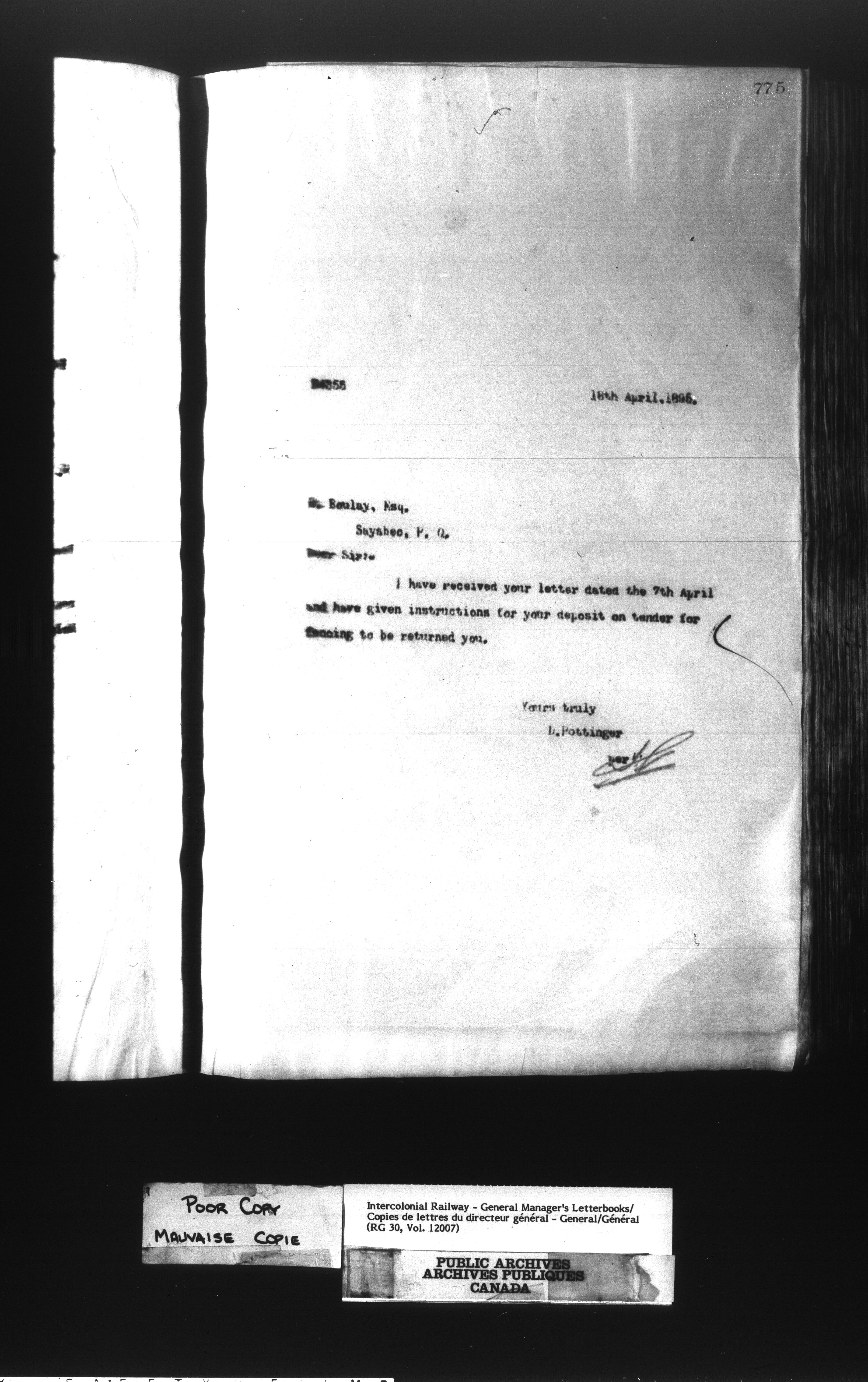 Canadian Government Railways : Office of the General Manager, Outward correspondence - 11376