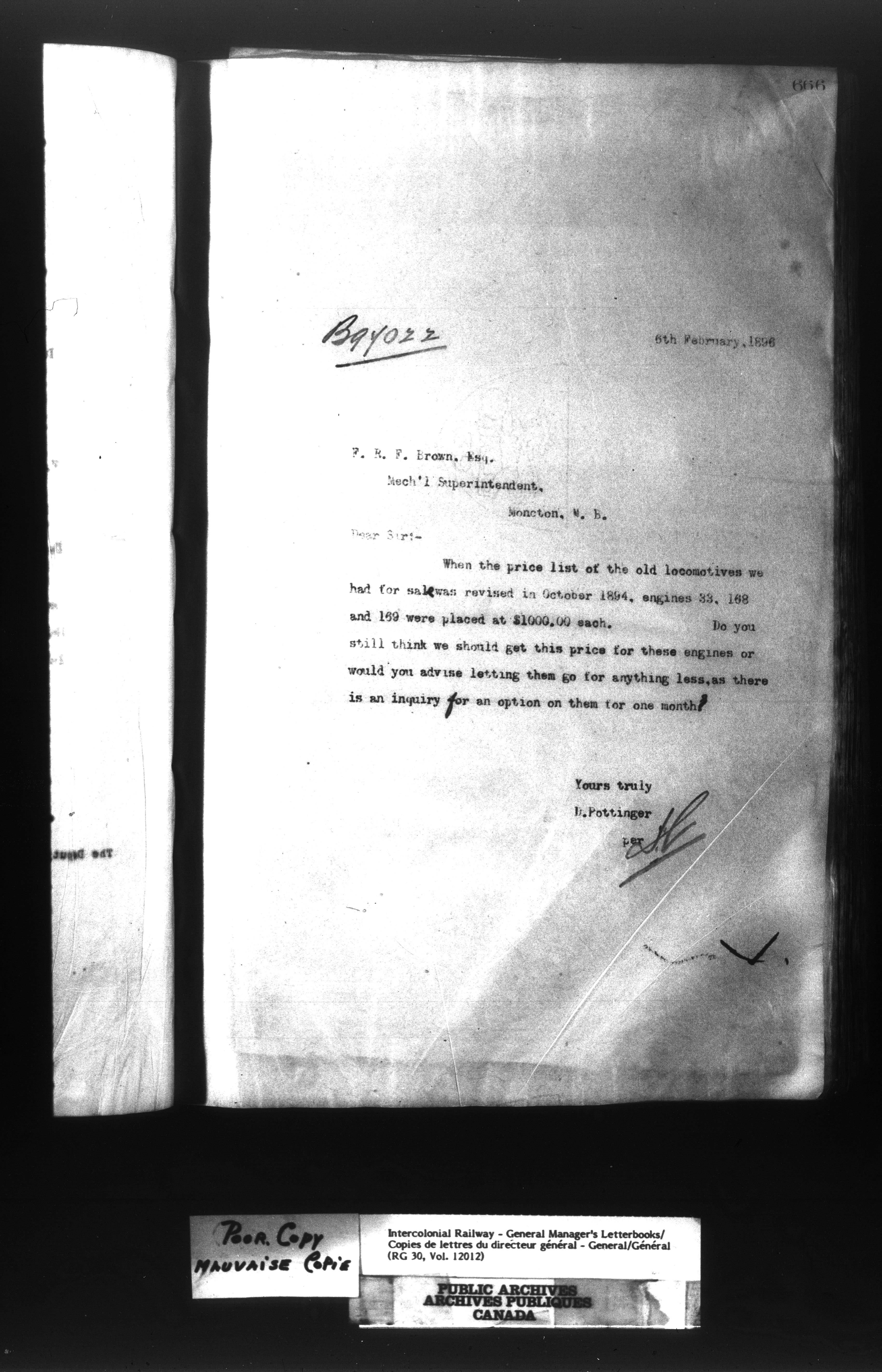 Canadian Government Railways : Office of the General Manager, Outward correspondence - 11382