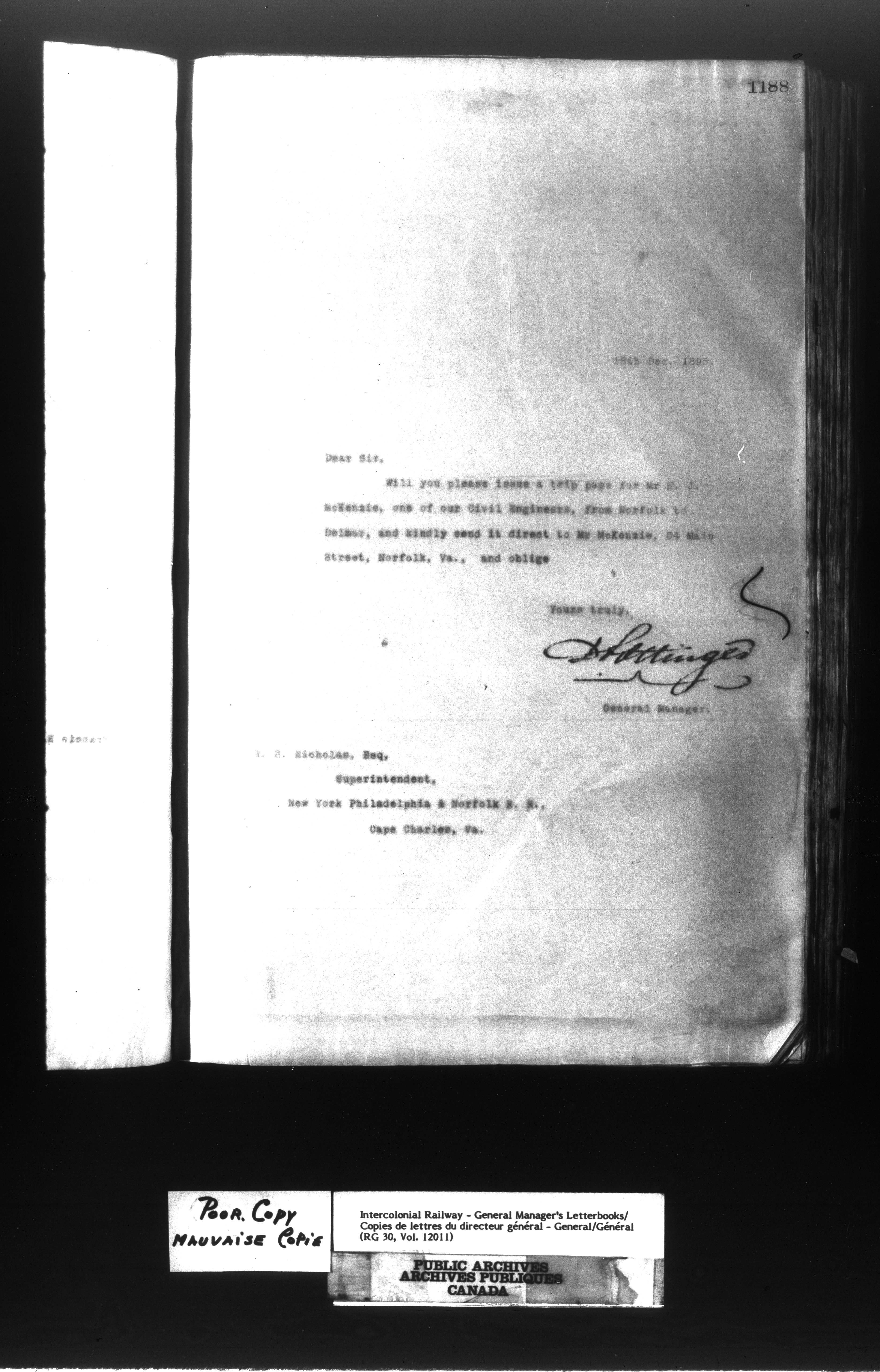 Canadian Government Railways : Office of the General Manager, Outward correspondence - 11382