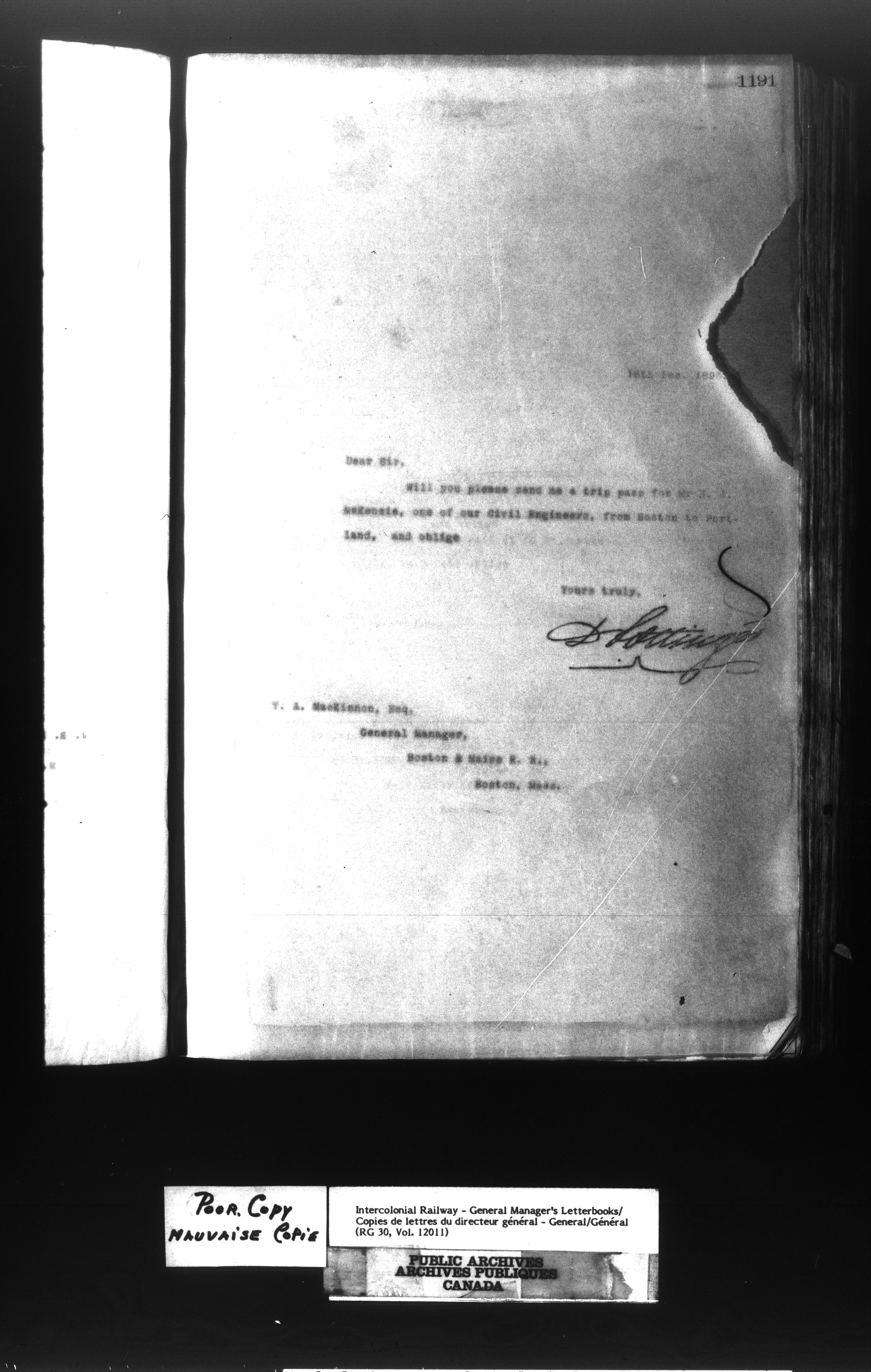 Canadian Government Railways : Office of the General Manager, Outward correspondence - 11382