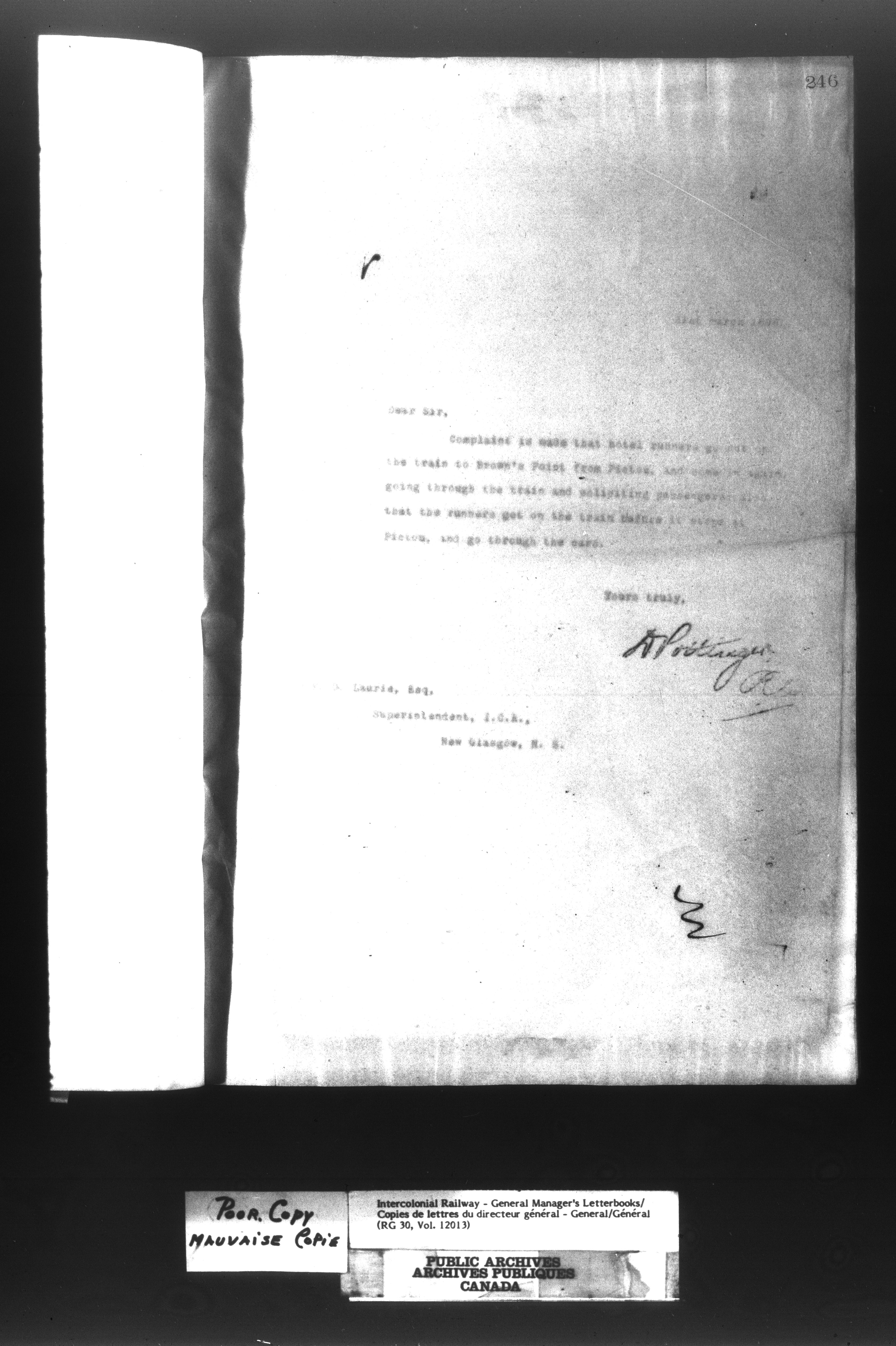 Canadian Government Railways : Office of the General Manager, Outward correspondence - 11383