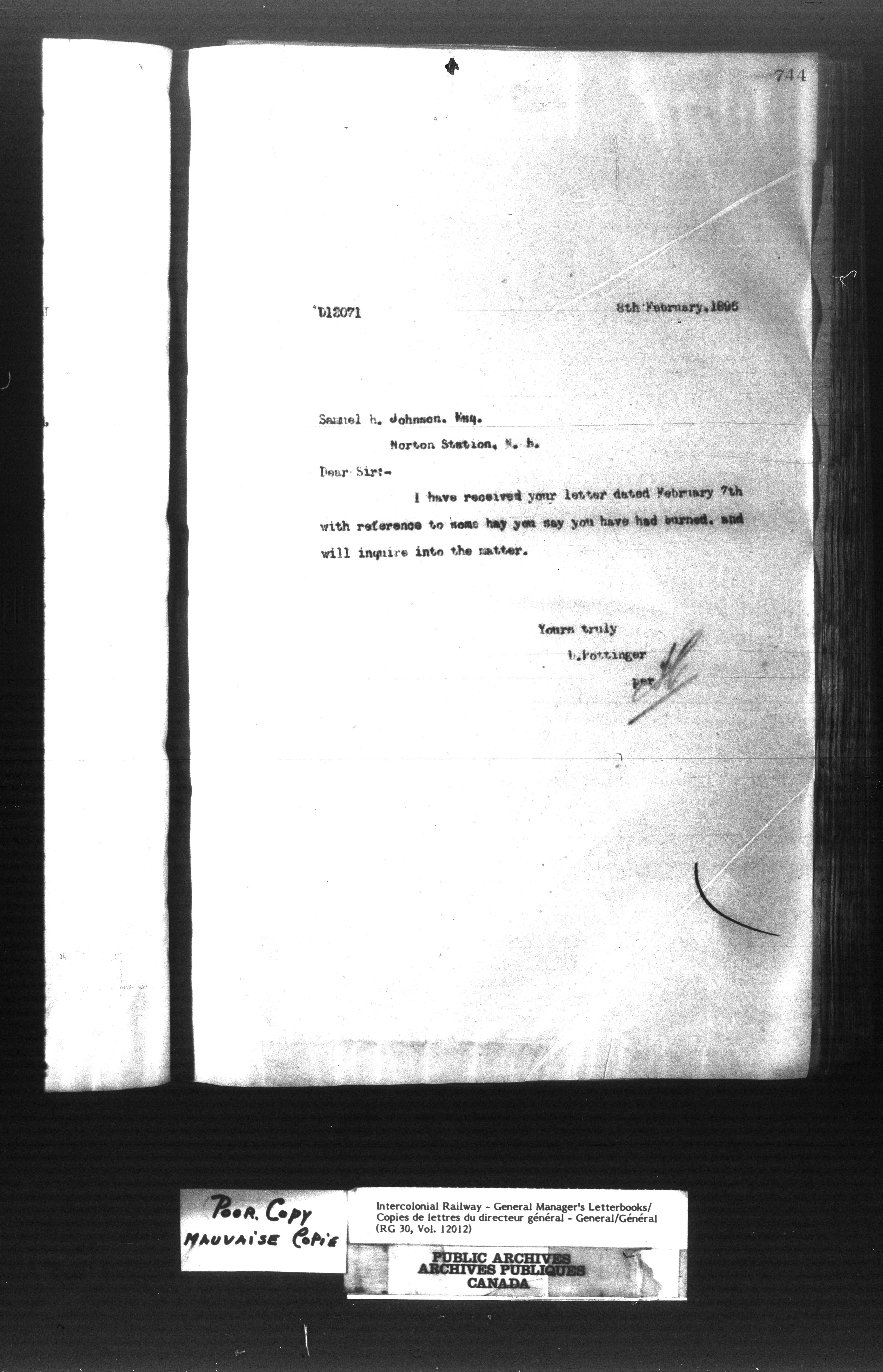 Canadian Government Railways : Office of the General Manager, Outward correspondence - 11383
