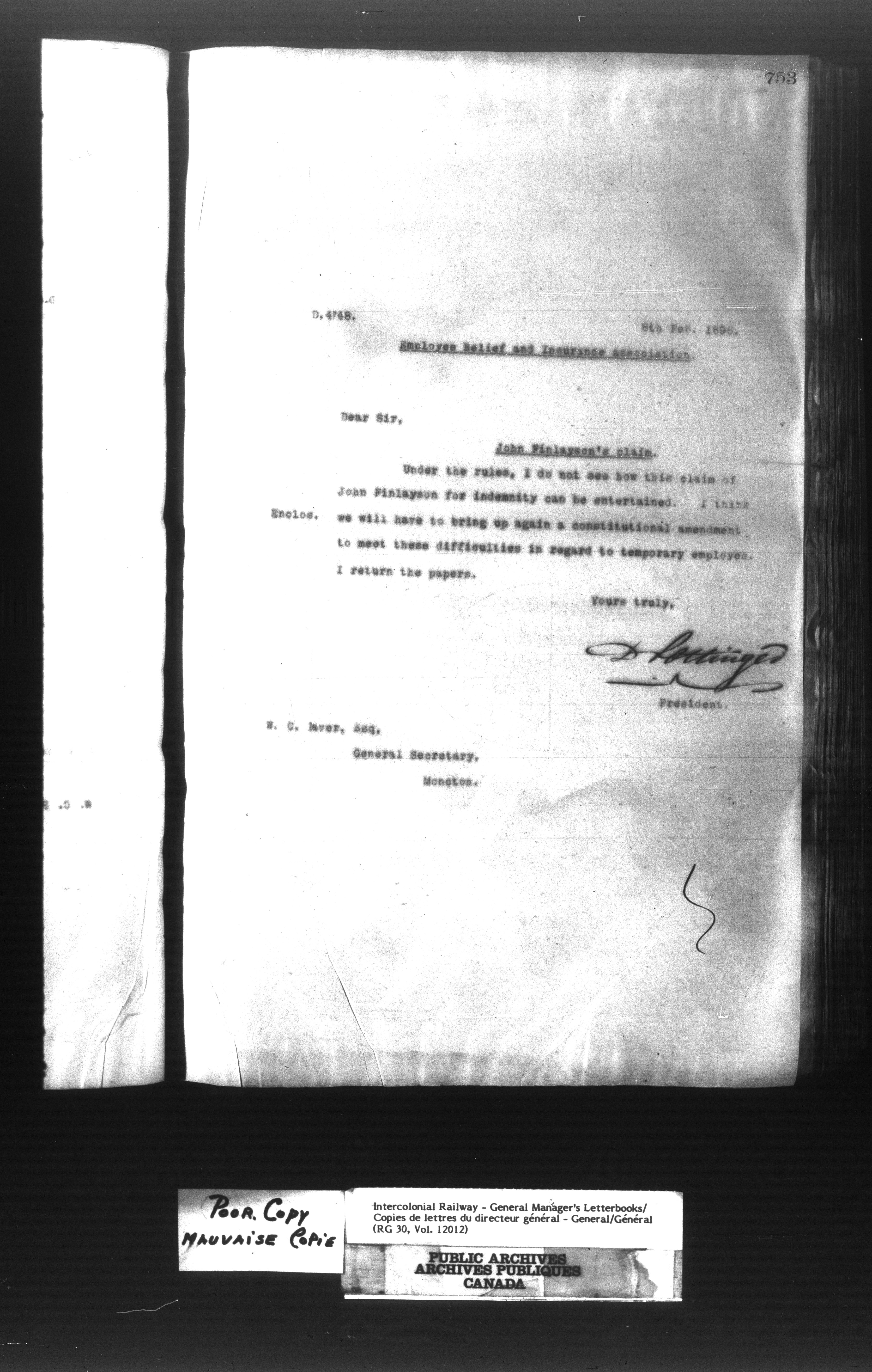 Canadian Government Railways : Office of the General Manager, Outward correspondence - 11383