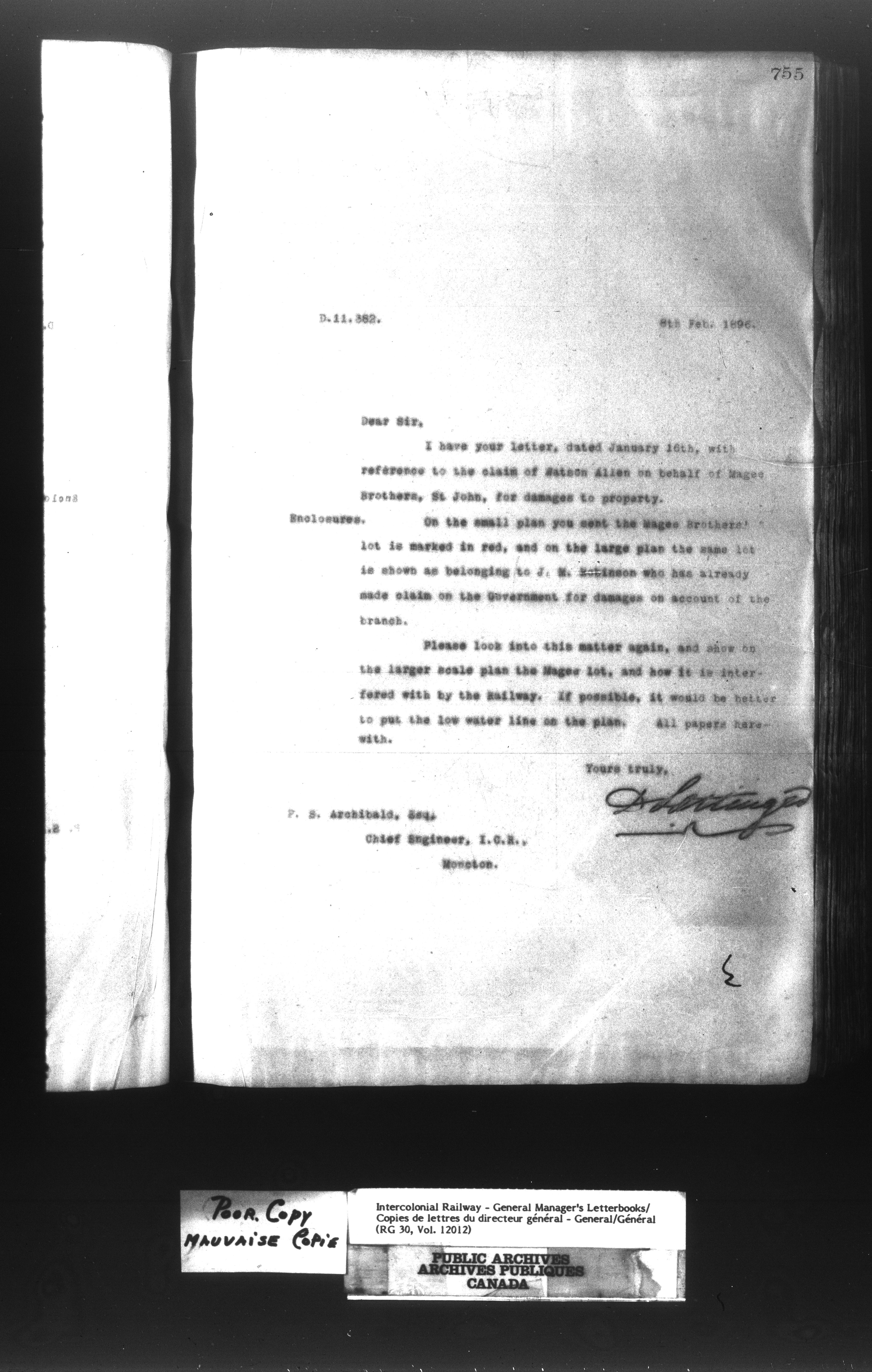 Canadian Government Railways : Office of the General Manager, Outward correspondence - 11383