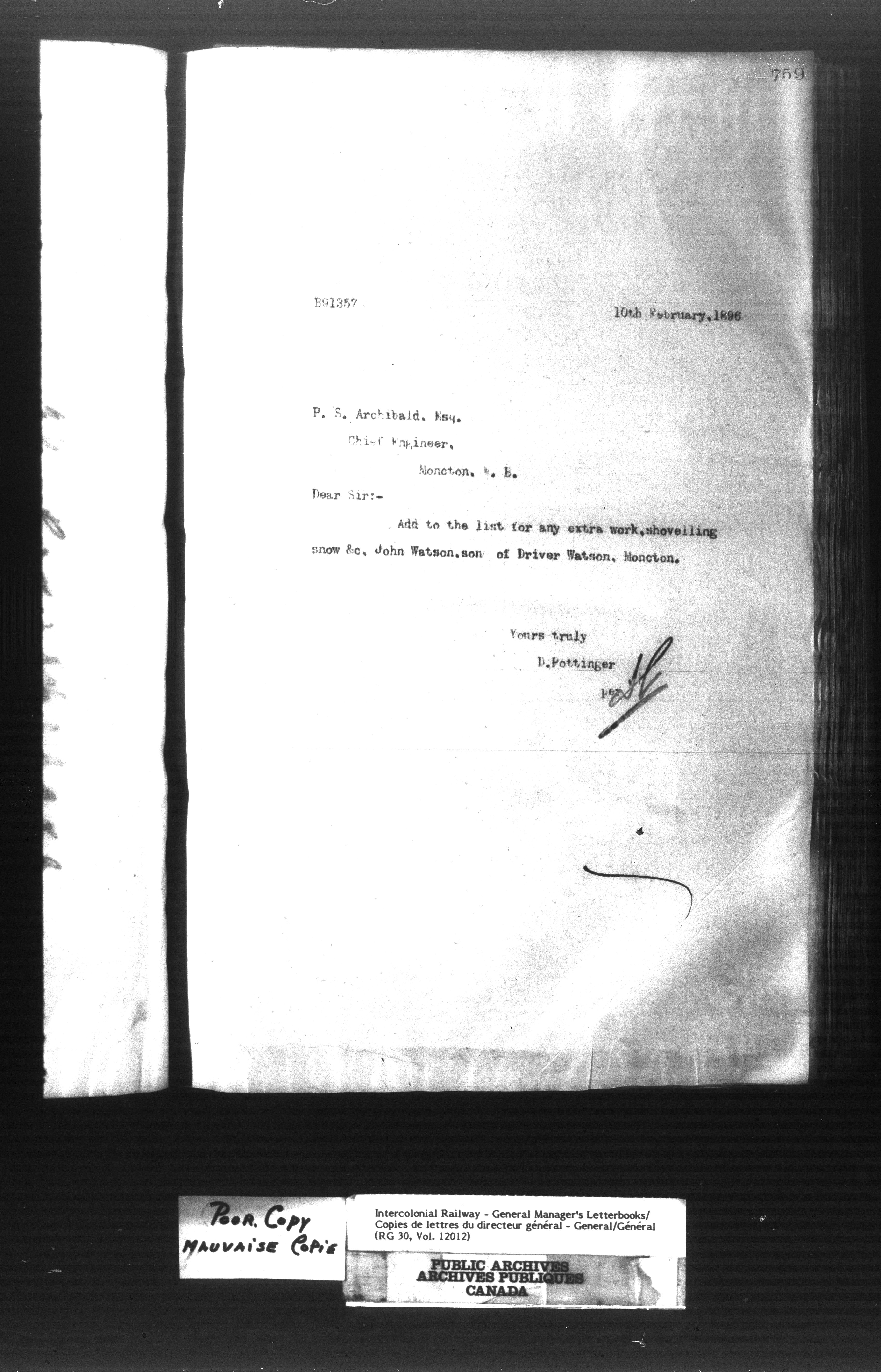 Canadian Government Railways : Office of the General Manager, Outward correspondence - 11383