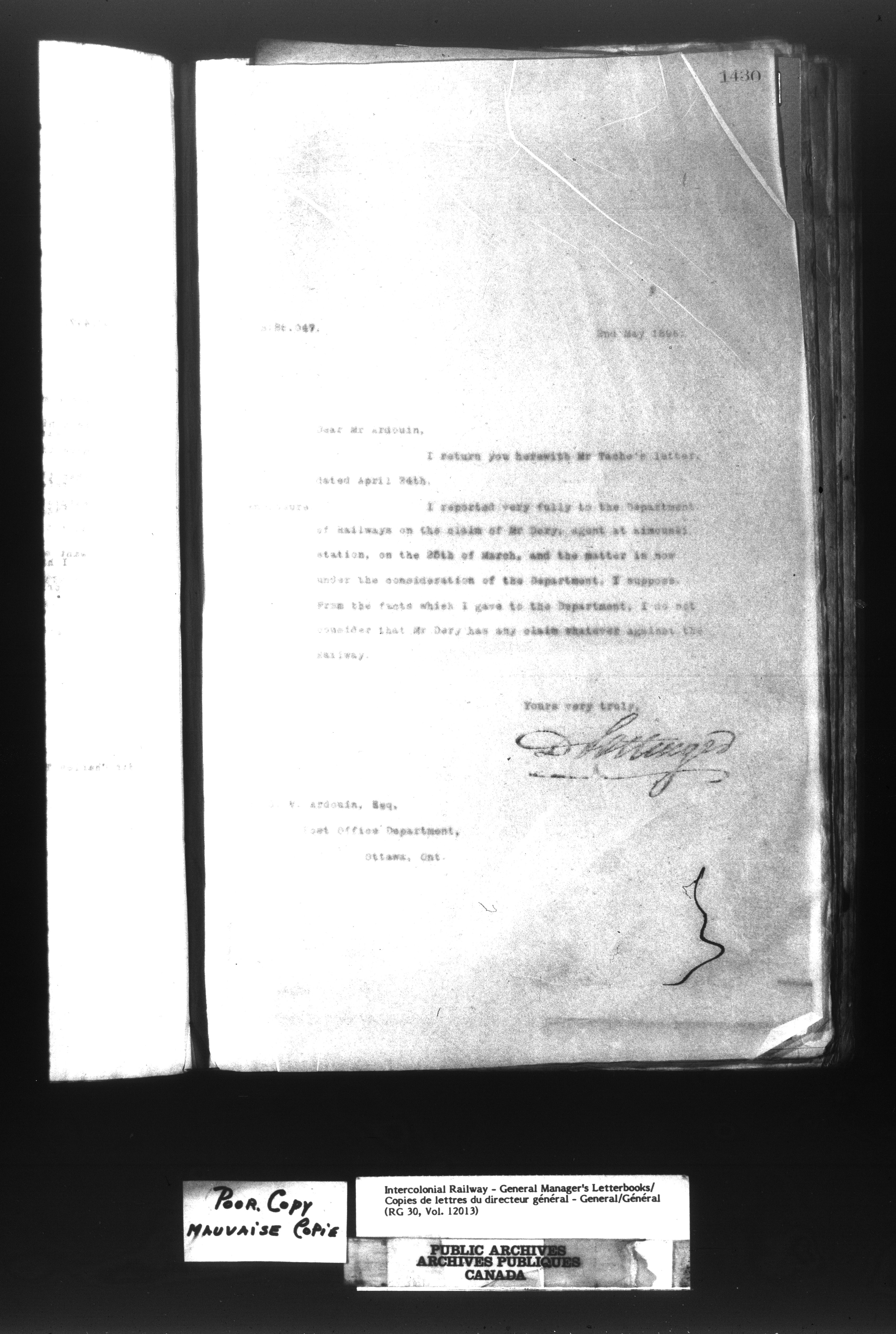 Canadian Government Railways : Office of the General Manager, Outward correspondence - 11384