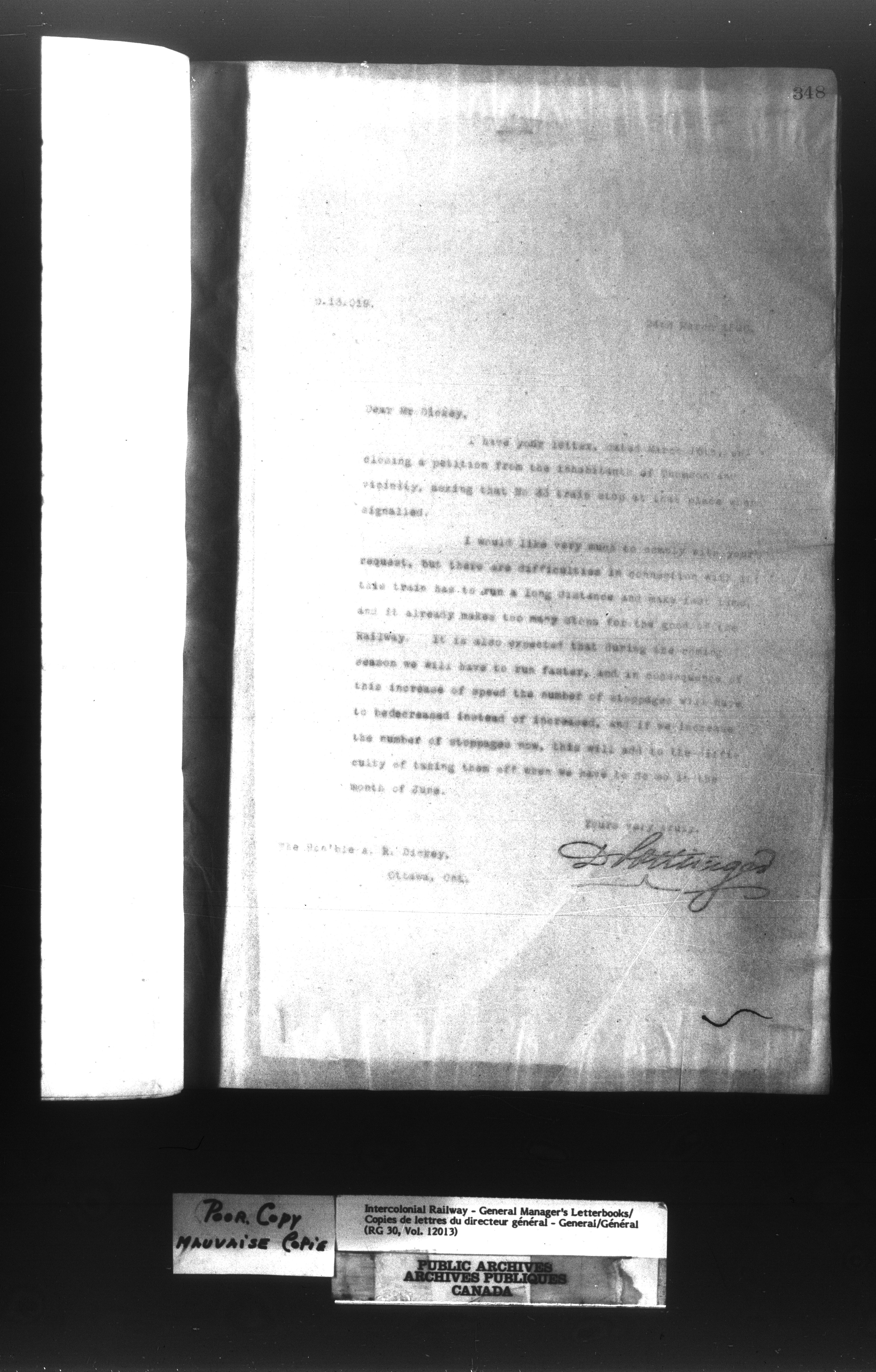 Canadian Government Railways : Office of the General Manager, Outward correspondence - 11384