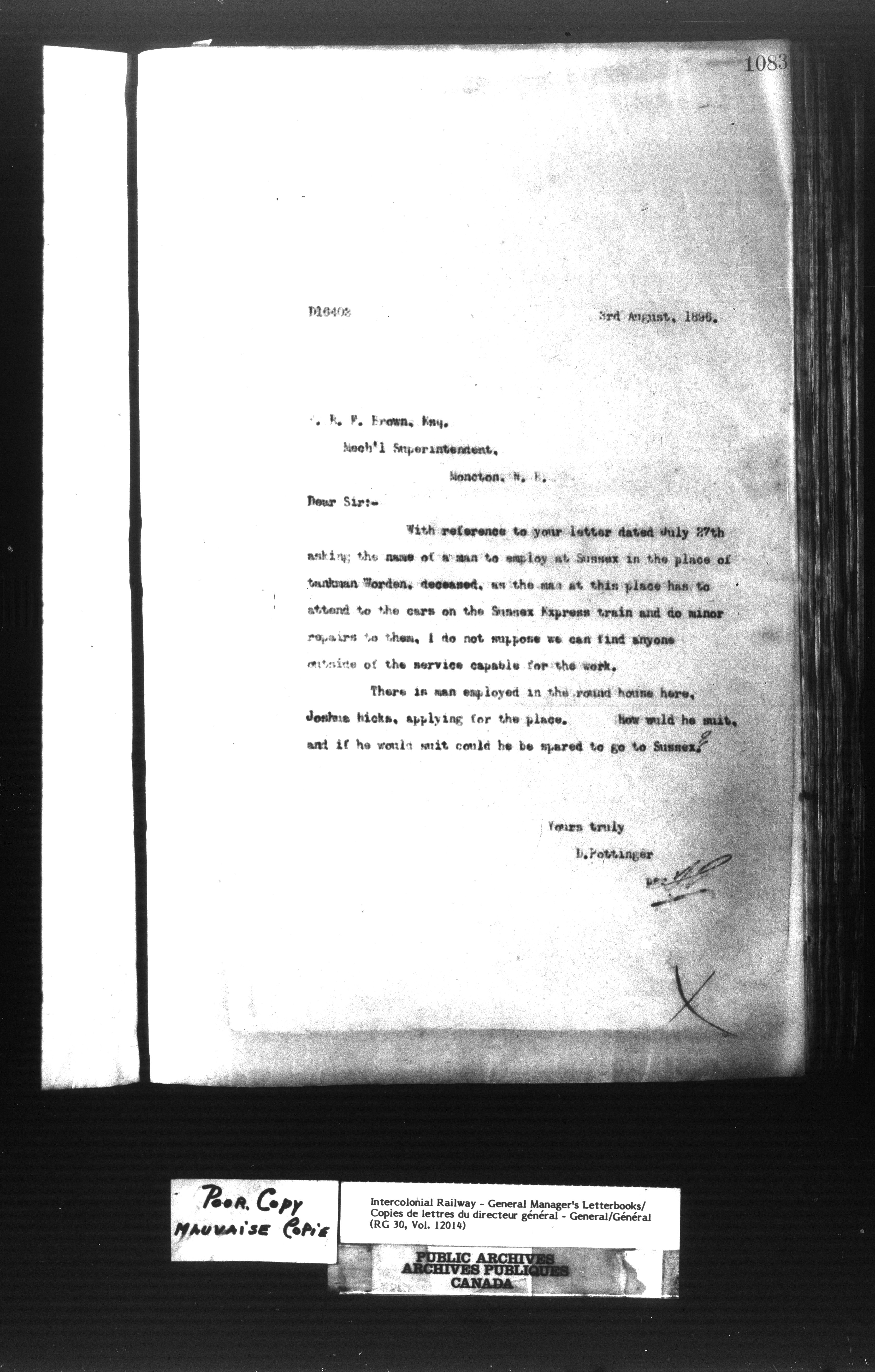 Canadian Government Railways : Office of the General Manager, Outward correspondence - 11386