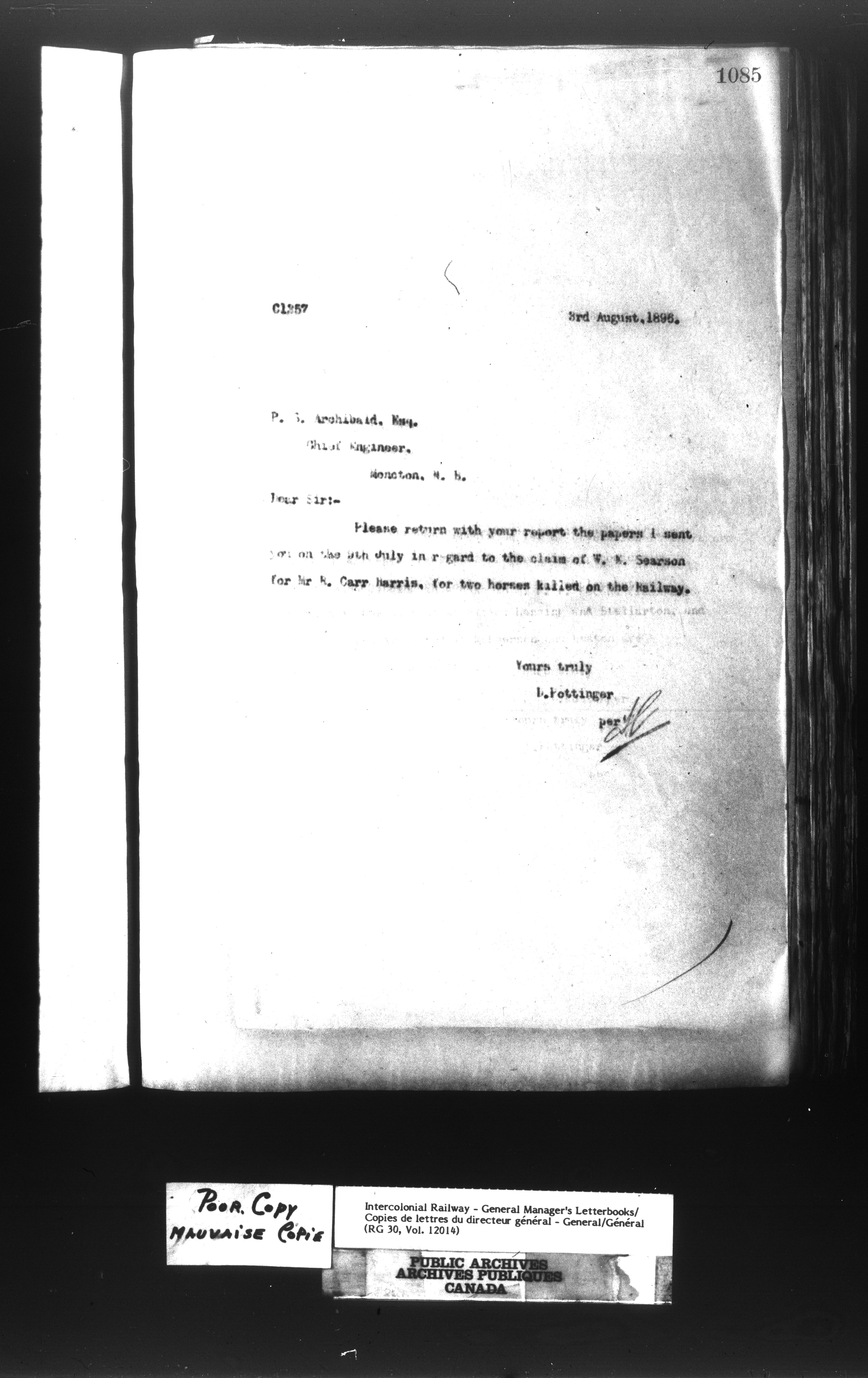 Canadian Government Railways : Office of the General Manager, Outward correspondence - 11386