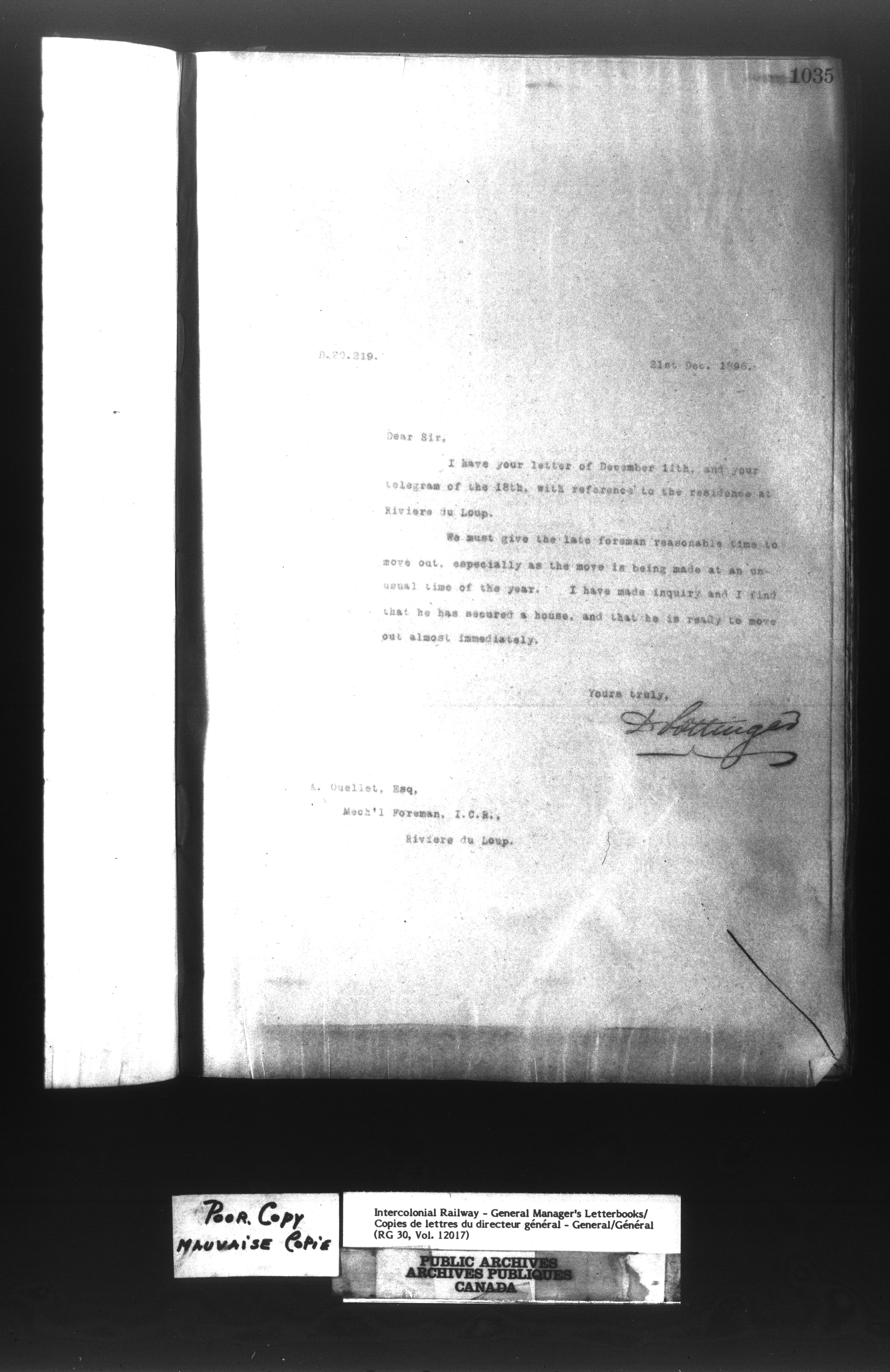 Canadian Government Railways : Office of the General Manager, Outward correspondence - 11389