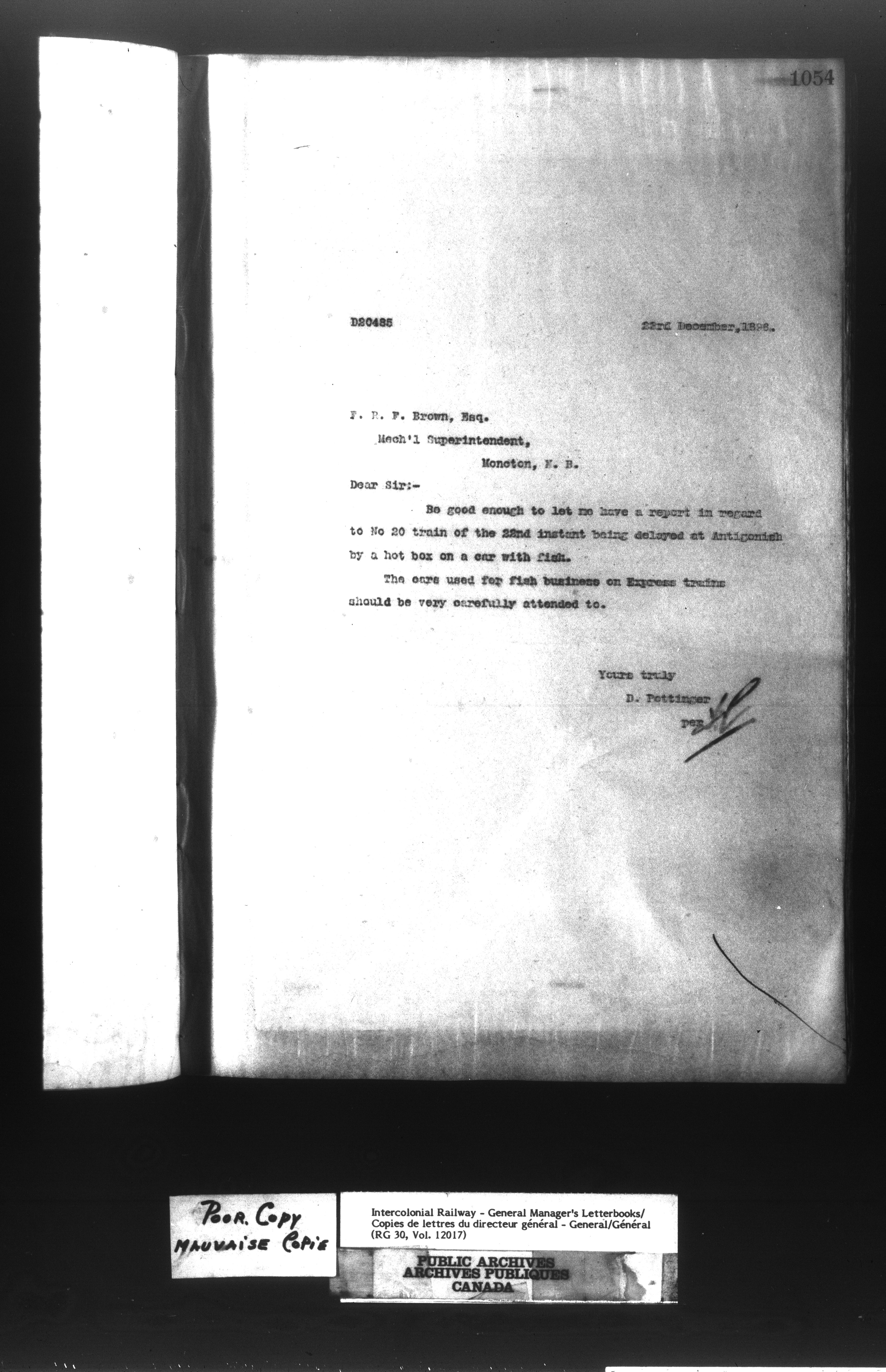 Canadian Government Railways : Office of the General Manager, Outward correspondence - 11389
