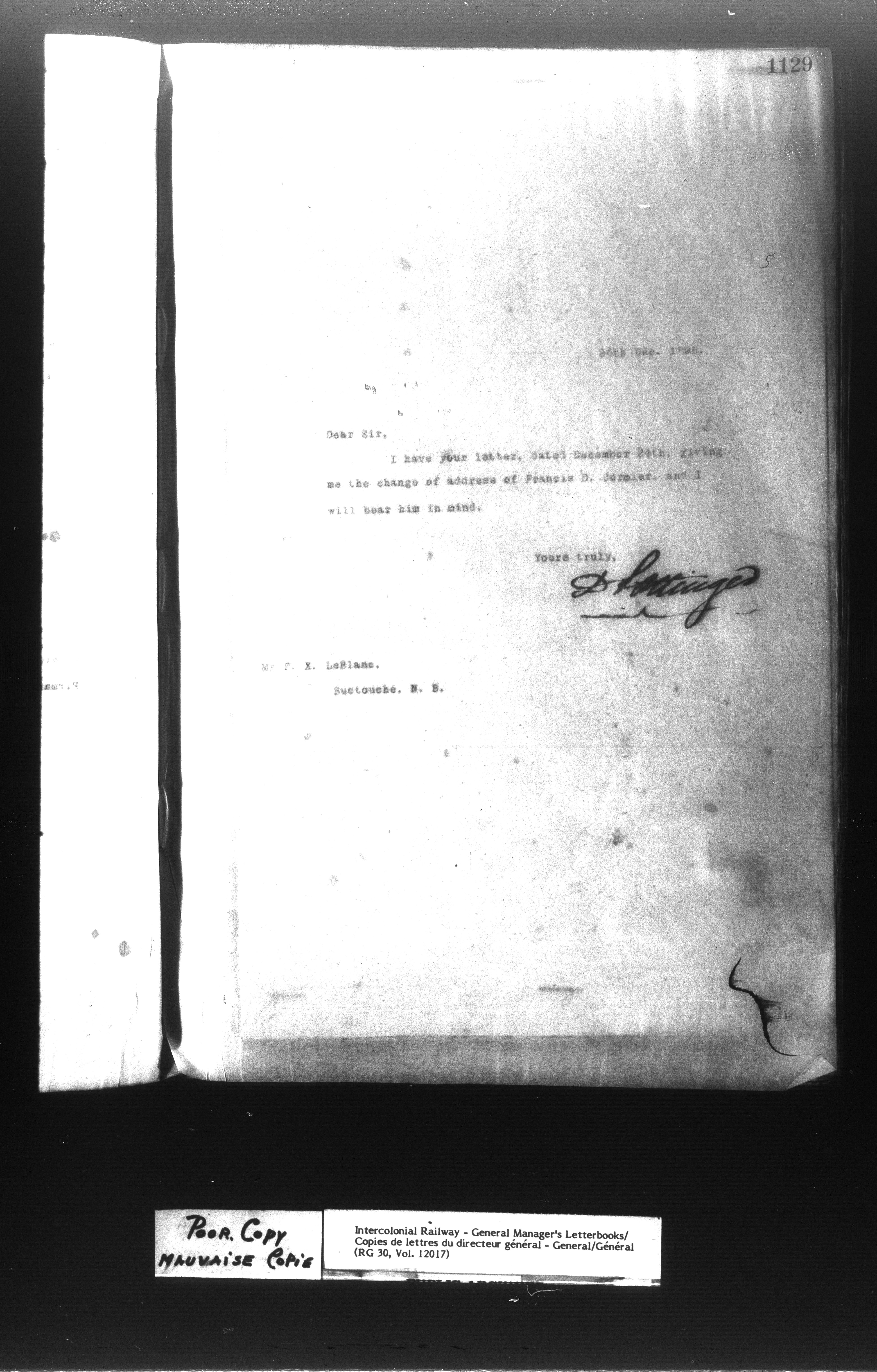 Canadian Government Railways : Office of the General Manager, Outward correspondence - 11390