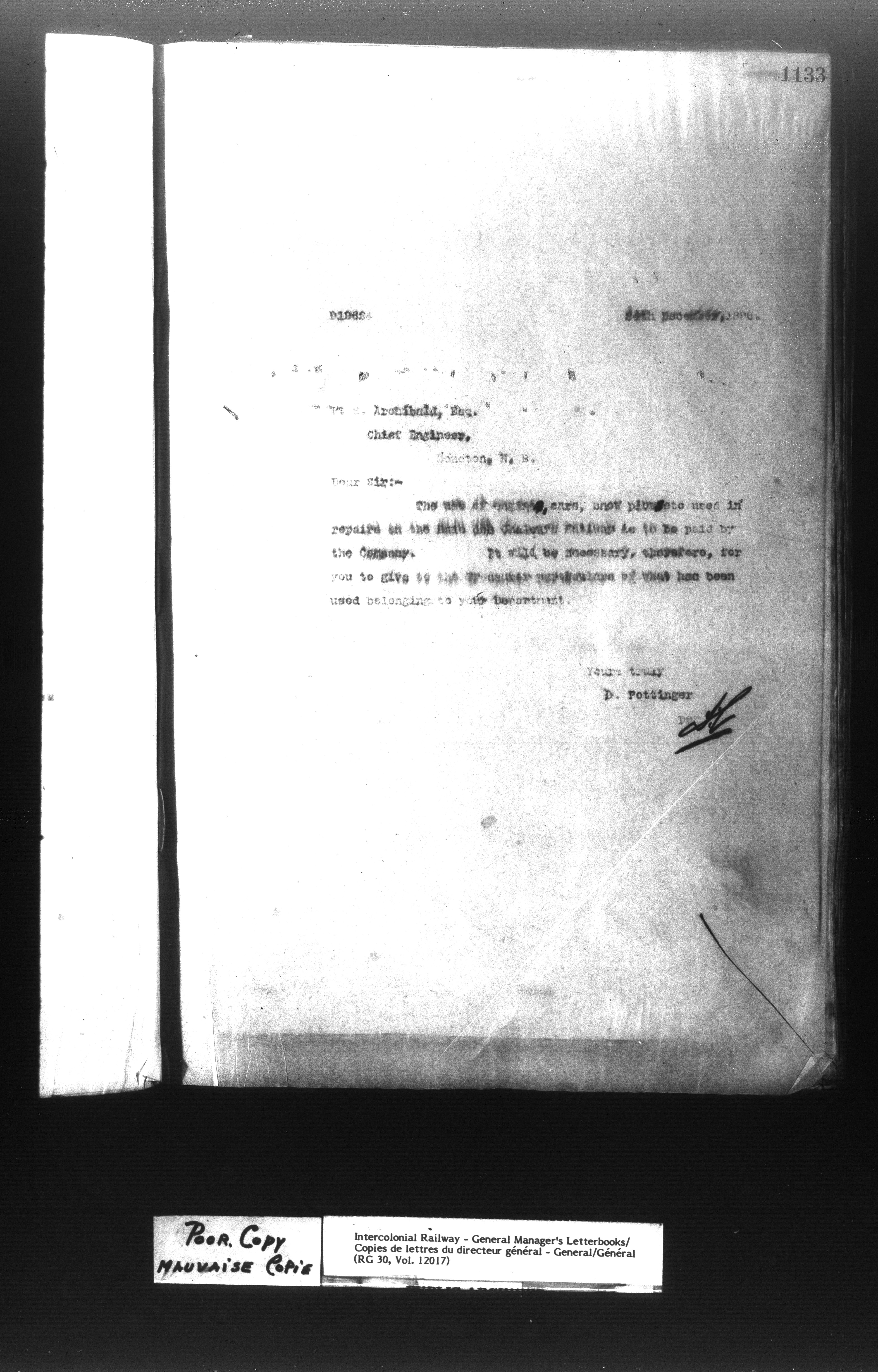 Canadian Government Railways : Office of the General Manager, Outward correspondence - 11390