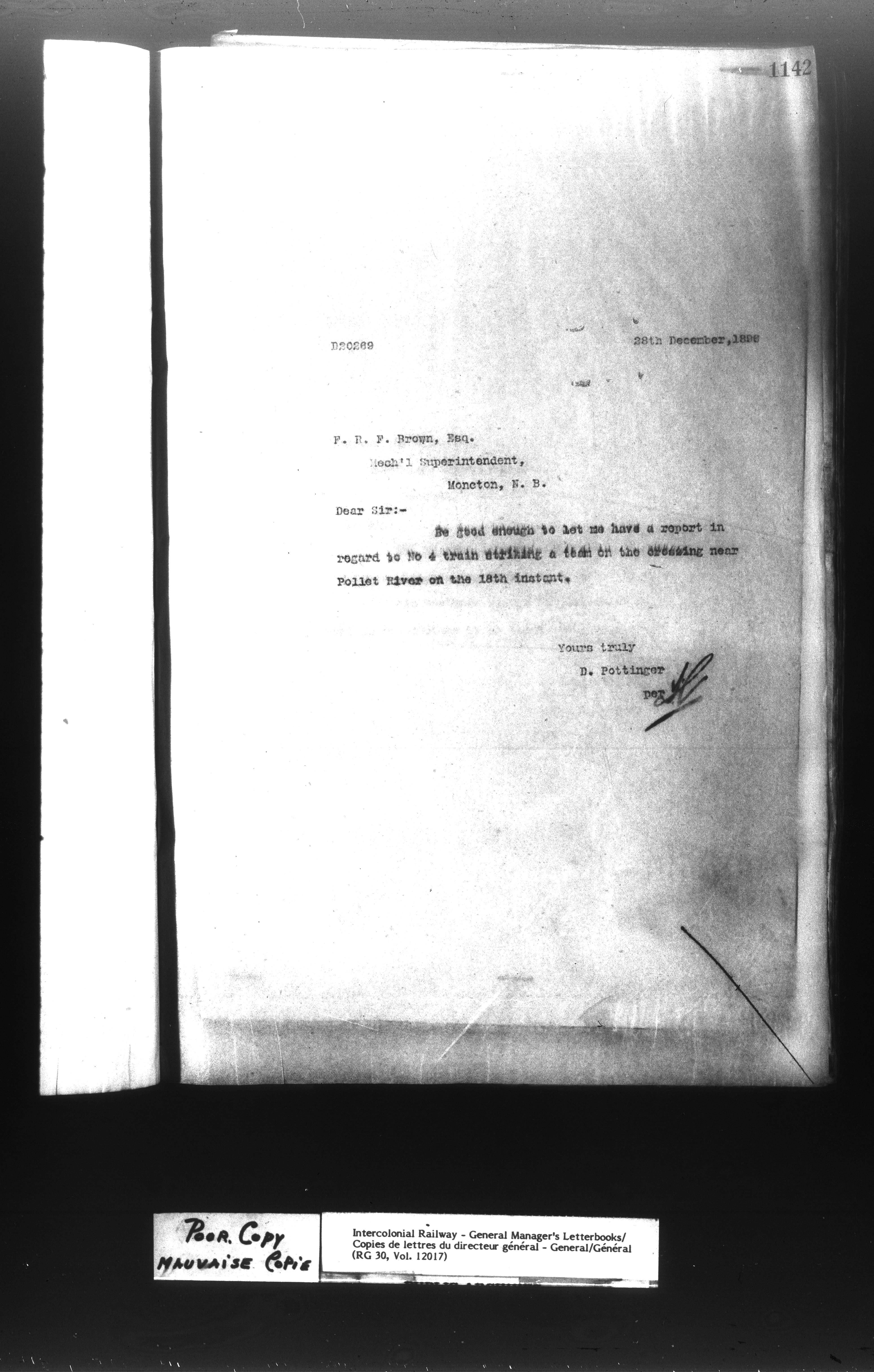 Canadian Government Railways : Office of the General Manager, Outward correspondence - 11390