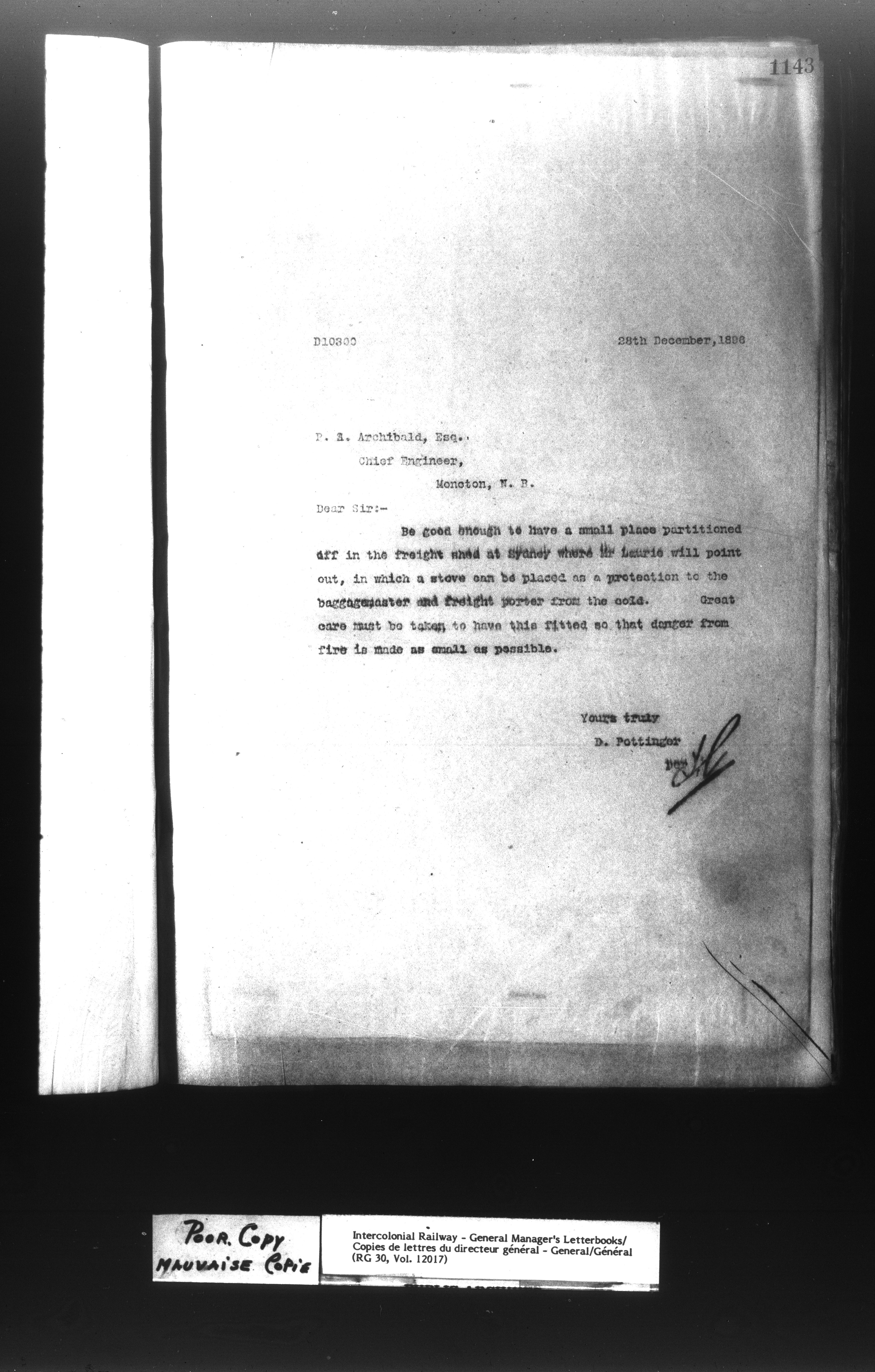 Canadian Government Railways : Office of the General Manager, Outward correspondence - 11390