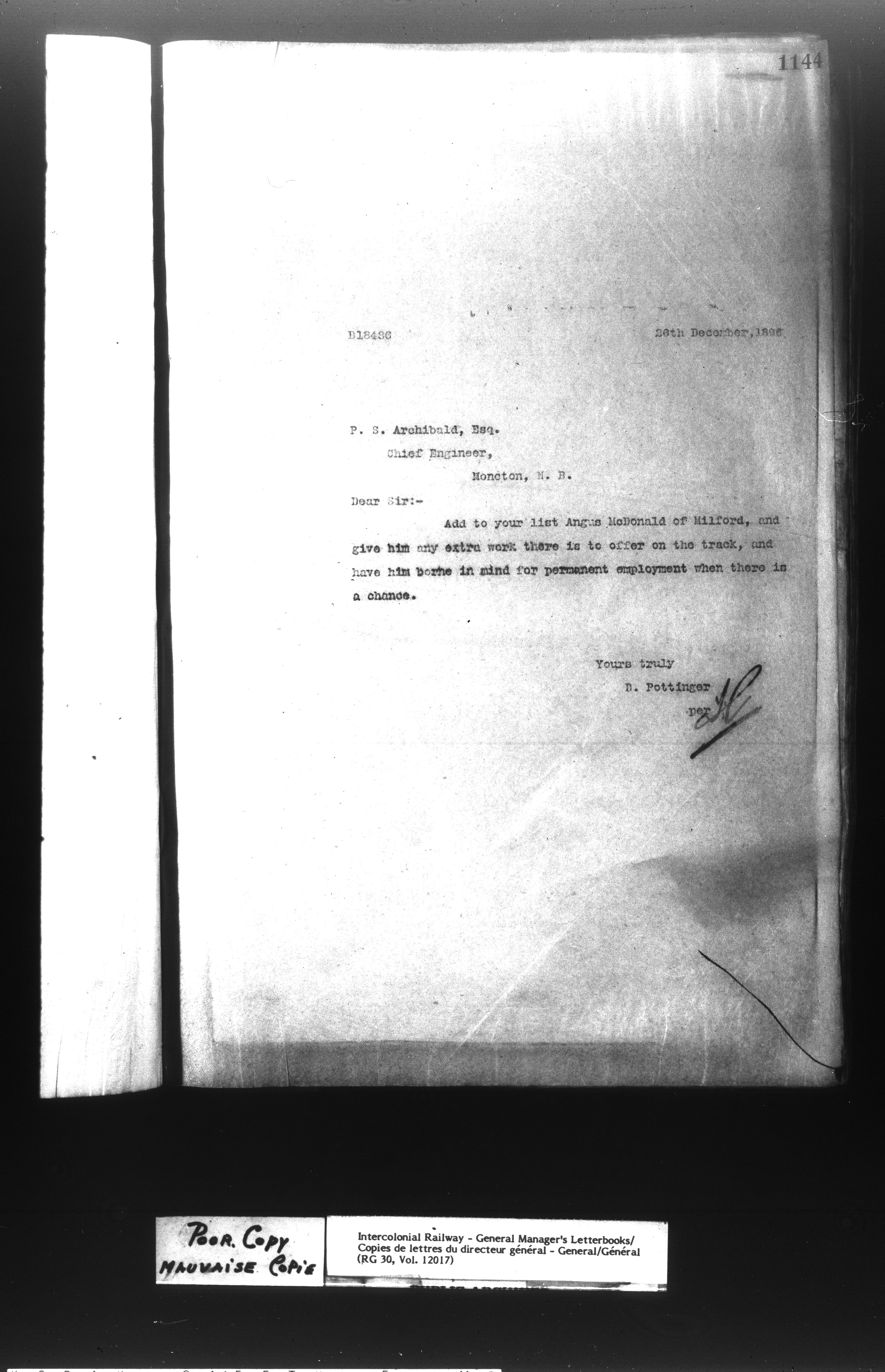 Canadian Government Railways : Office of the General Manager, Outward correspondence - 11390