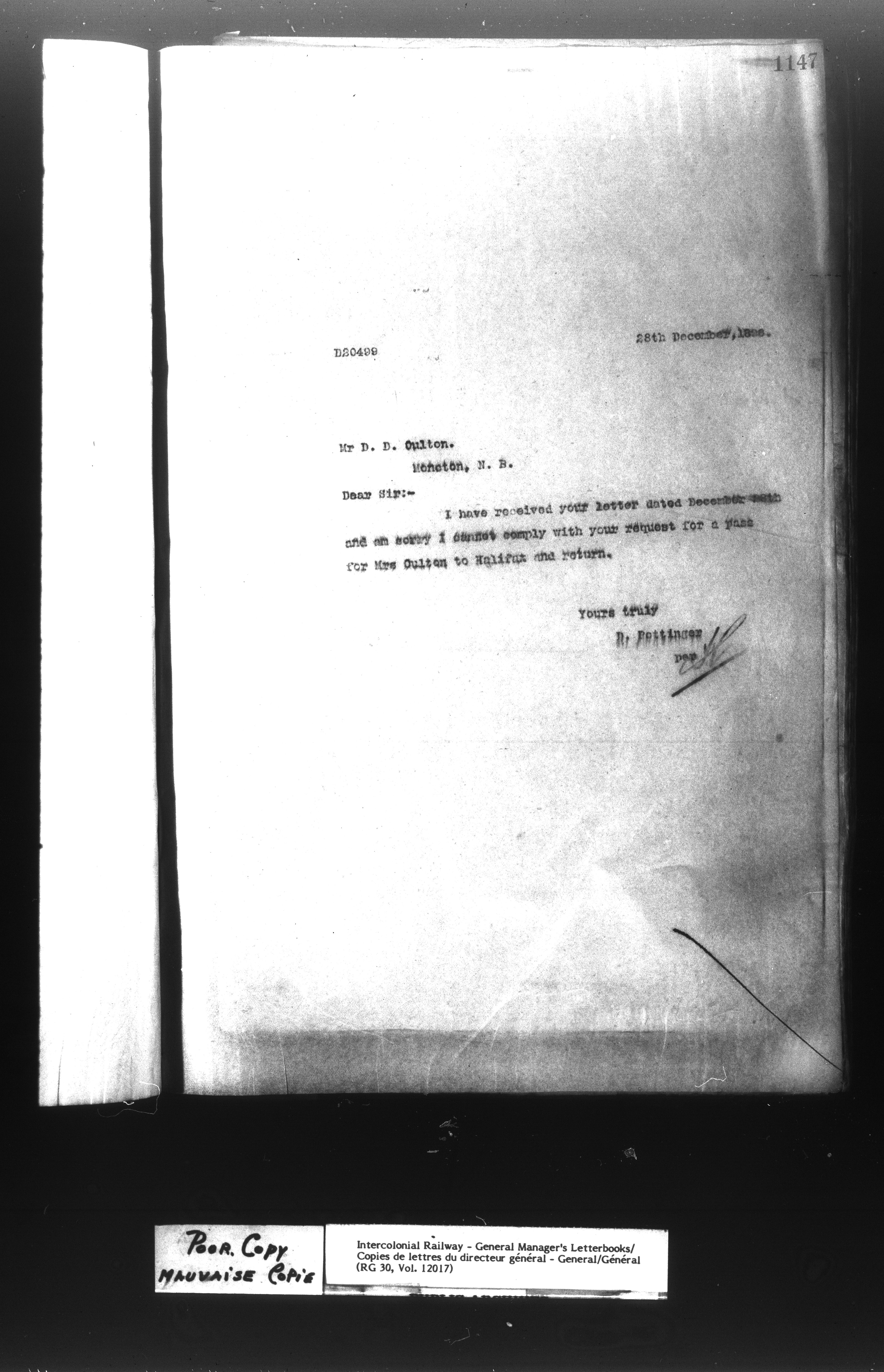 Canadian Government Railways : Office of the General Manager, Outward correspondence - 11390