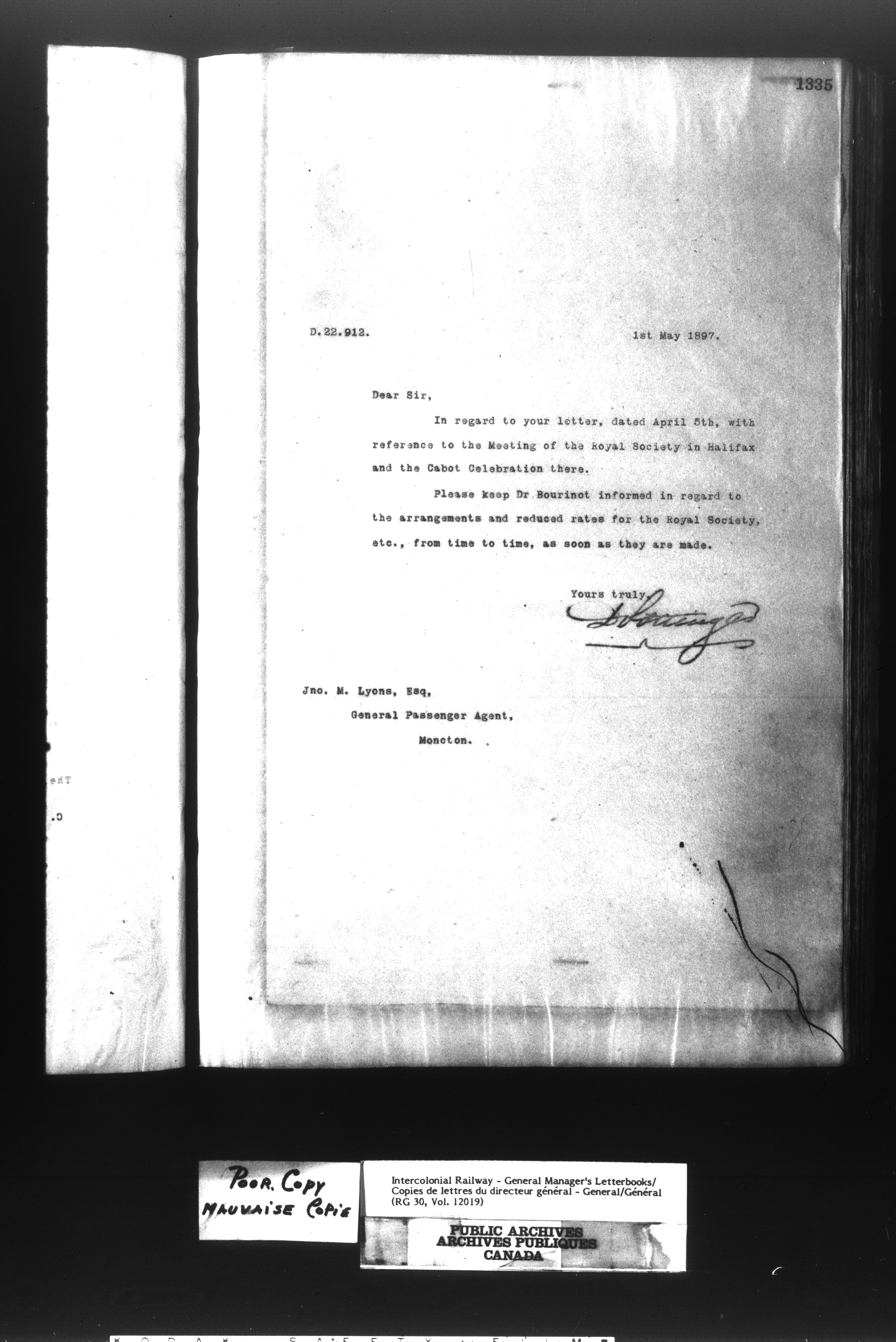Canadian Government Railways : Office of the General Manager, Outward correspondence - 11393