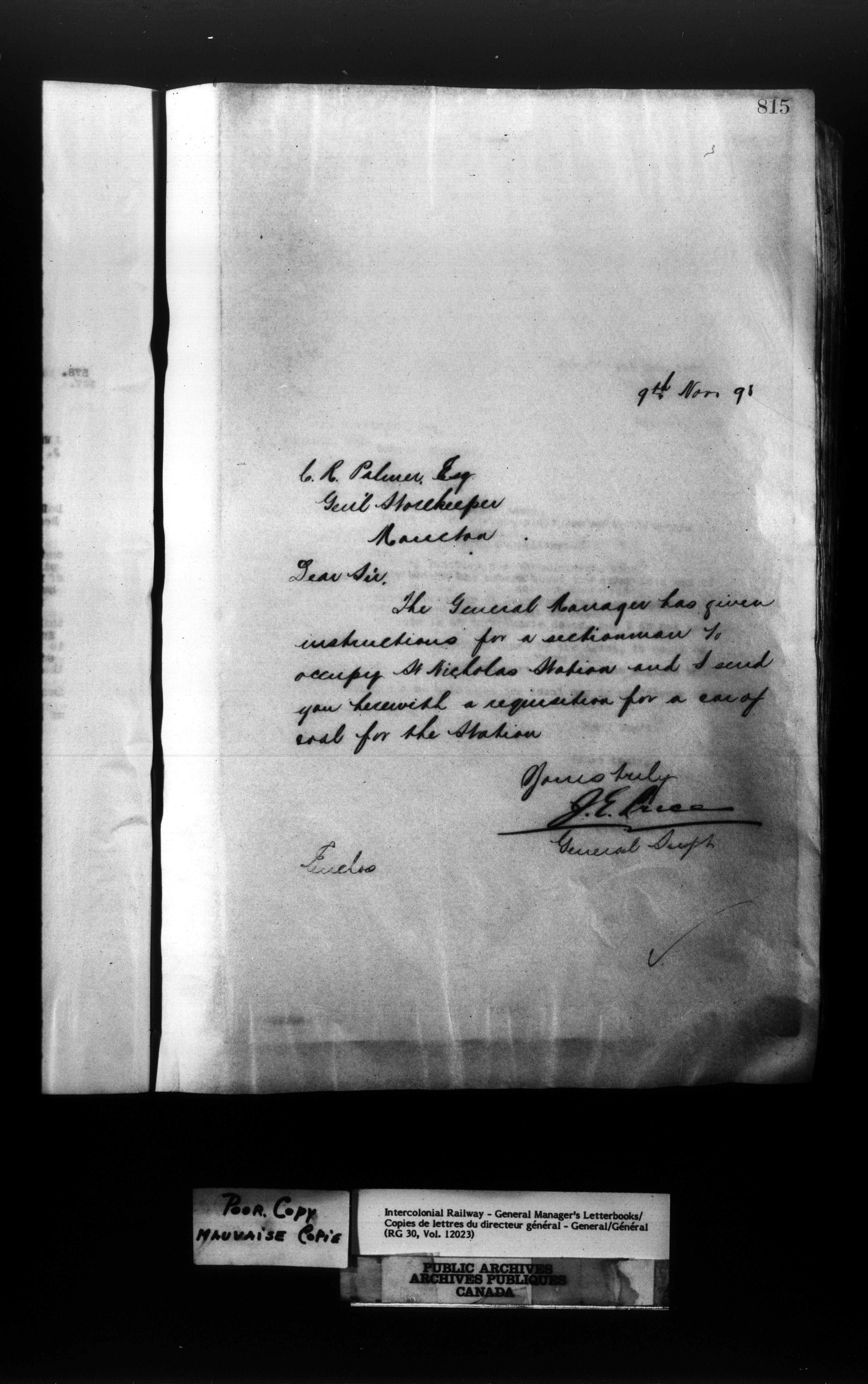 Canadian Government Railways : Office of the General Manager, Outward correspondence - 11398